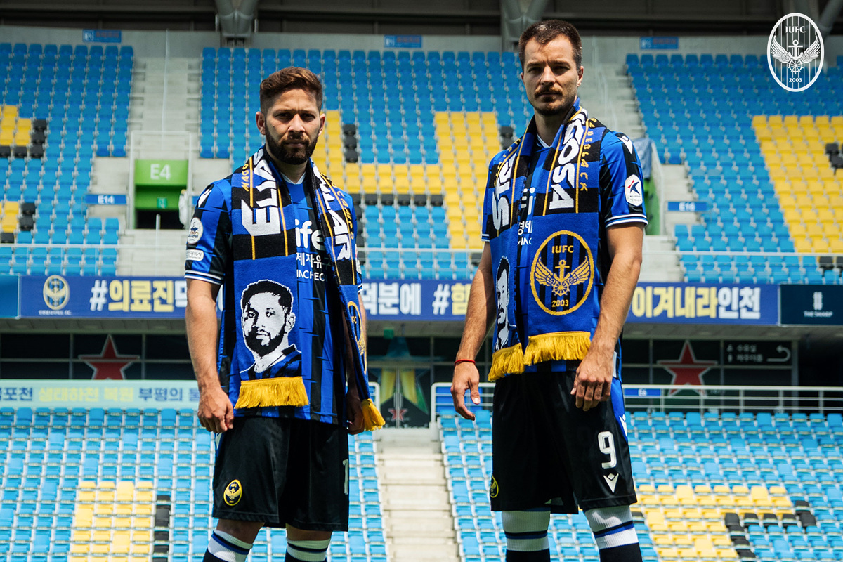 스카프에는 2018년 데뷔한 두 선수의 연도별 활약 사진과 함께 두 선수의 별명인 아길라르 ‘중원의 마술사(Mago Del Mediocampo)’, 무고사 ‘파검의 피니셔(Finisher of Blue Black)’ 문자가 프린팅되어 있다. 두 선수는 이번 기념상품 제작 과정에 직접 참여했는데, 특히 스카프에 담긴 본인의 별명을 직접 선택해 눈길을 끈다.