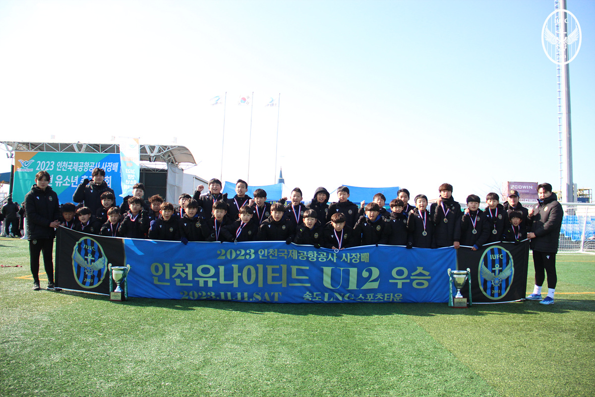 인천유나이티드 U-12는 지난 달 11일 송도 LNG 종합 스포츠타운에서 개최된 ‘인천국제공항공사 사장배 2023 인천 유소년 축구대회’ 결승전에서 동구청 U-12를 상대로 7-0 대승을 거두며 우승을 차지했다. 이번 승리로 인천유나이티드 U-12는 2023시즌 세 번째 대회 우승 트로피를 들었다. 우승을 맞아 강지우, 곽유신, 최진호, 박현우 네 선수를 UTD기자단에서 만나봤다.