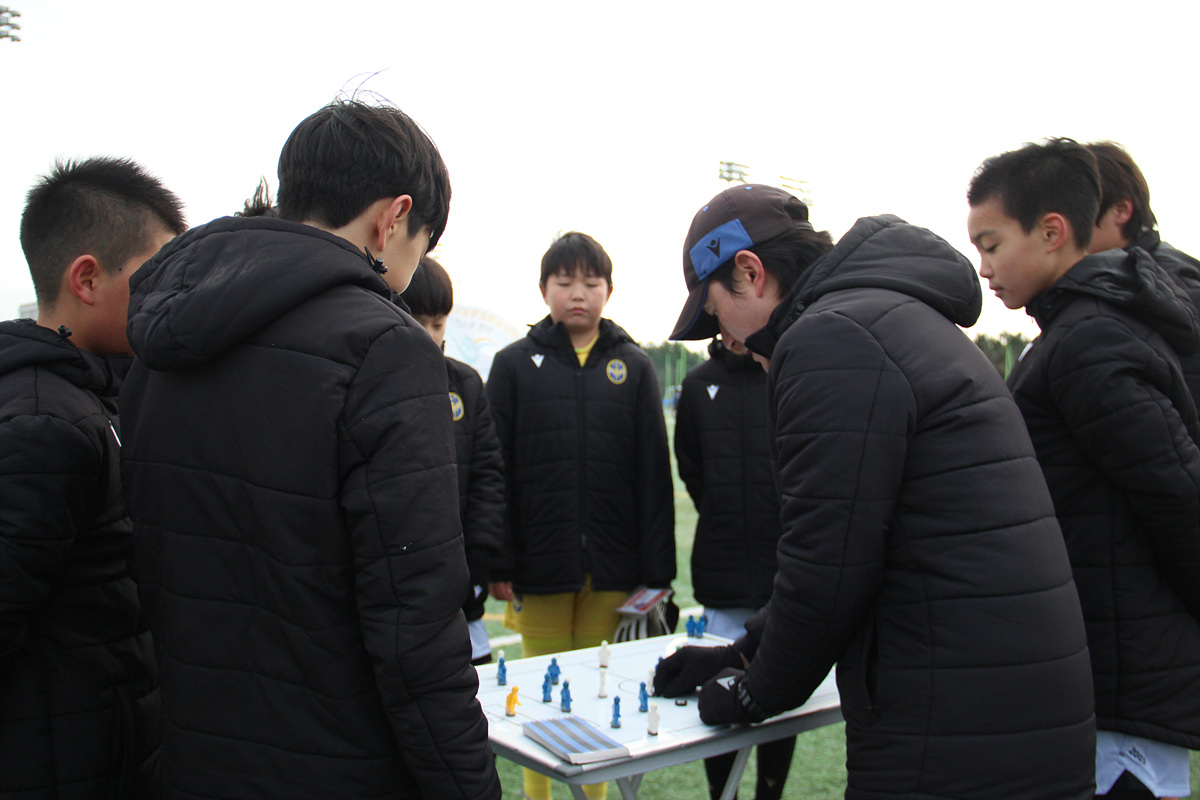 전술에 관한 것은 비단 훈련뿐 아니라 경기 현장에서도 독특한 것을 볼 수 있었다. 바로 레고로 이루어진 전술 판이다. 보통 현장에서 사용하는 평면 보드 판이 아닌, 레고를 이용해 입체적으로 경기장 상황을 시뮬레이션해볼 수 있는 도구다. 이재홍 감독은 이를 경기 시작 전과 하프타임 때 적극적으로 활용하며 선수들에게 설명하는 모습을 보였다. 이는 실제로 선수들에게 큰 도움이 됐다. 곽유신은 “위에서 바라보면서 설명을 들으면 확실히 경기를 전체적으로 바라볼 수 있게 된다. 입체적으로 보니까 확실히 더 도움이 되었고, 경기를 뛰면서 레고 판을 생각하기도 했다”고 밝혔다.