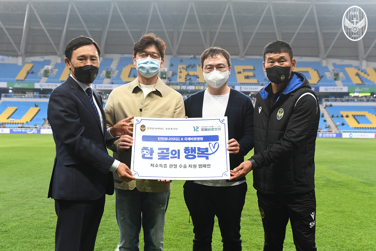 인천유나이티드가 인천 지역 소외계층 관절 수술 환자를 위해 국제바로병원과 특별한 캠페인을 기획했다.