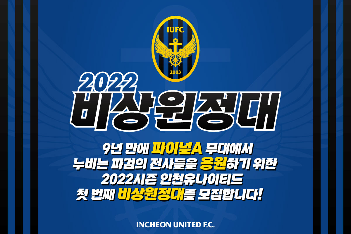 10월 8일 35라운드 강원과의 시즌 첫 비상원정대 모집은 9월 30일 금요일 낮 12시부터 10월 5일 수요일 낮 12시까지 인천 구단 공식 홈페이지에서 진행되며, 그 밖에 비상원정대 관련 문의는 구단 홈페이지 하단 채널톡 문의 혹은 유선 문의하면 된다.