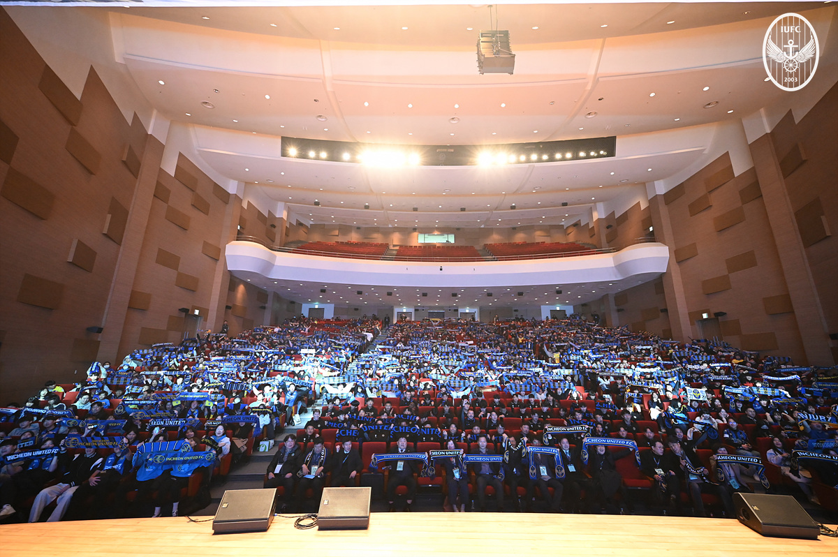 인천은 지난 25일 인천글로벌캠퍼스 대강당에서 팬들과 함께하는 2024시즌 출정식을 열었다. 이날 무려 인천 팬 1,400여 명이 현장을 찾아 대강당 1층을 파랑검정색으로 물들였다.