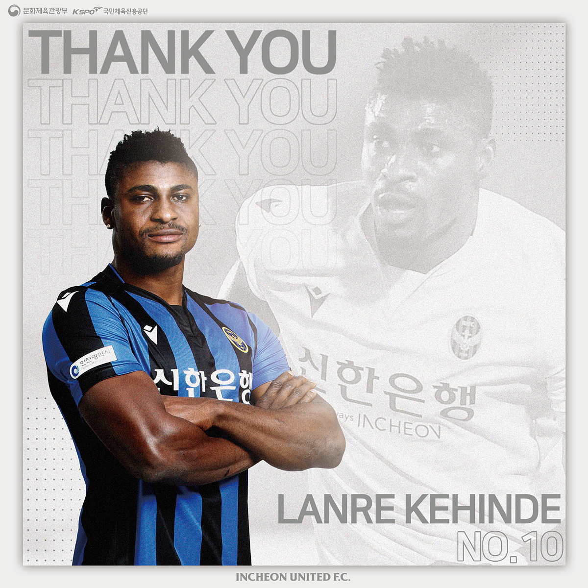 짧은 시간이었지만 우리 구단과 함께했던 케힌데 선수의 열정과 노고에 깊이 감사드리며 앞날에 큰 행운이 깃들길 응원합니다.INCHEON UNITEDMEDIA FEEDS