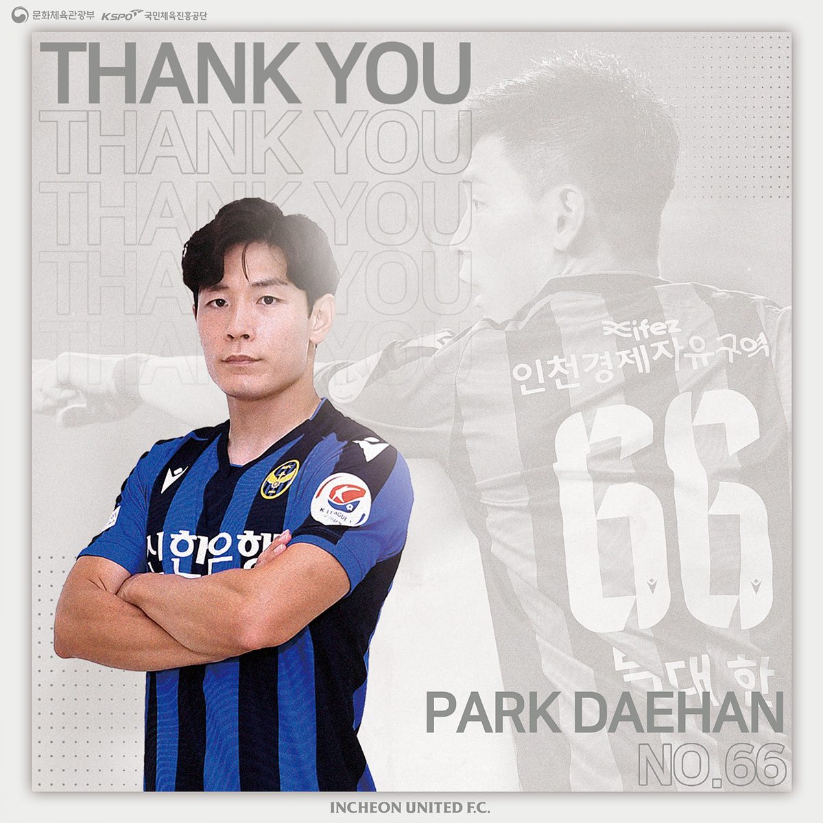 우리 구단은 그동안 투지넘치는 활약을 보여준 박대한 선수에게 깊은 감사를 드리며, 앞으로의 앞날에 행운이 있길 응원하겠습니다.INCHEON UNITEDMEDIA FEEDS