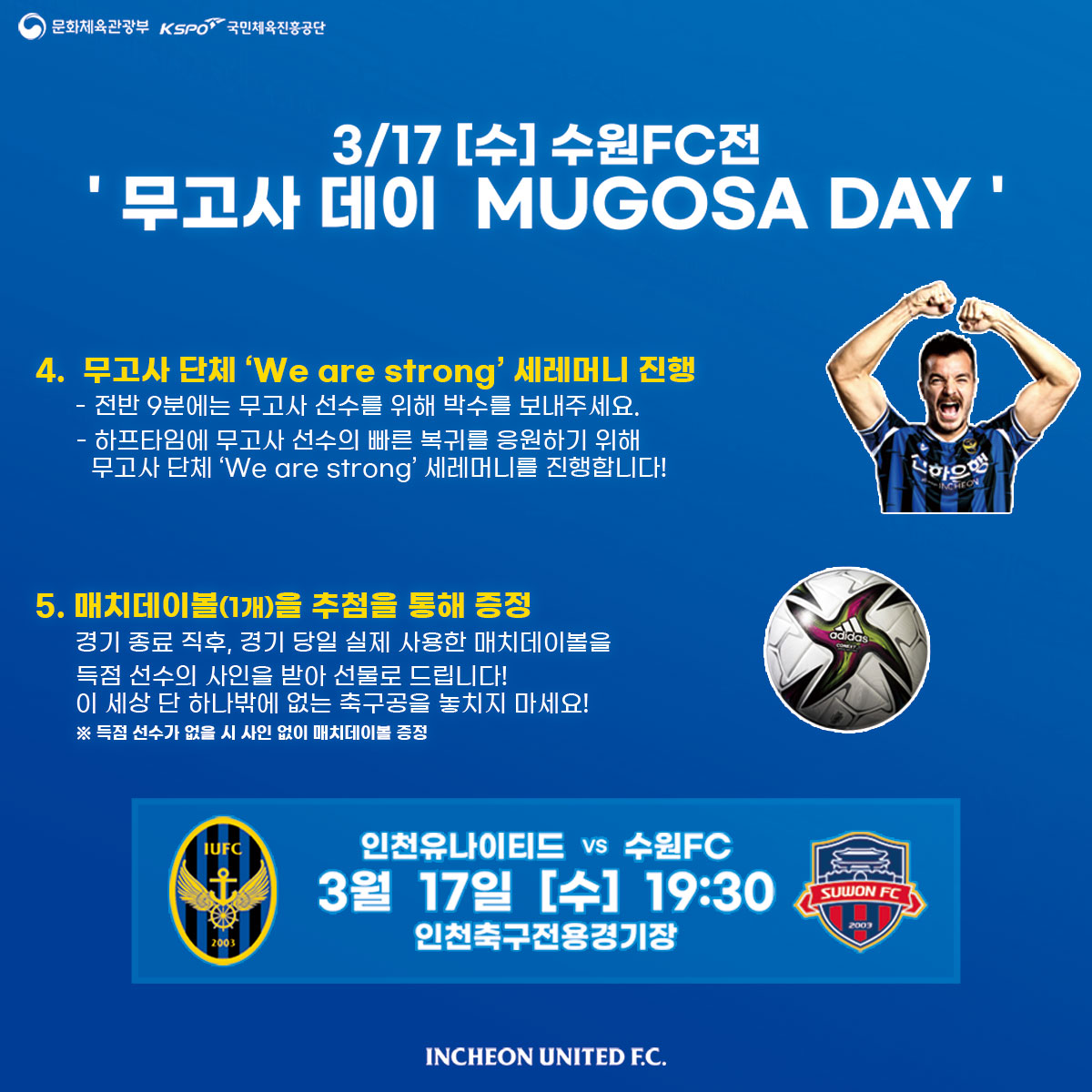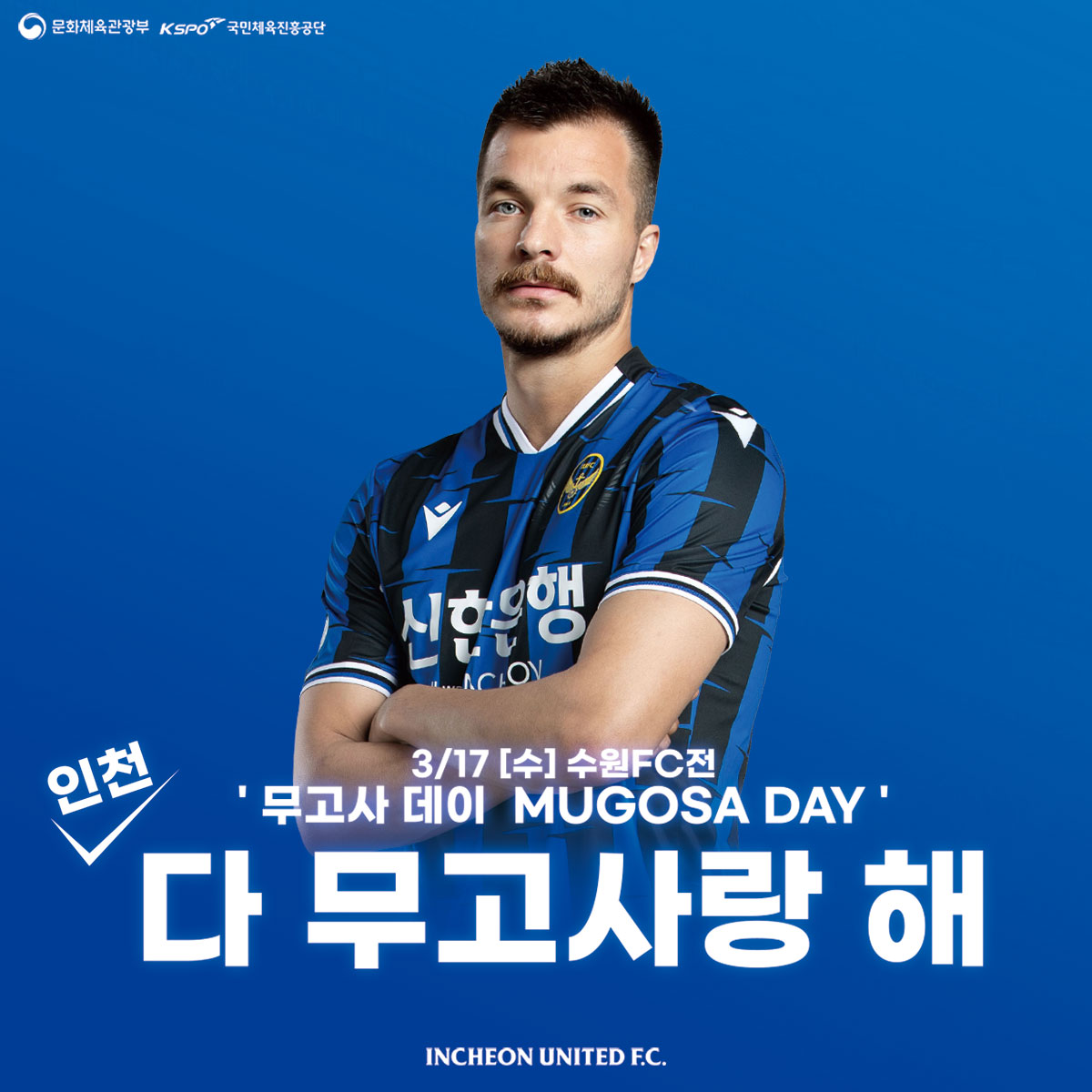 3/17(수) 수원FC전에 무고사 선수를 위한 '다 무고사랑 해' DAY가 진행됩니다.