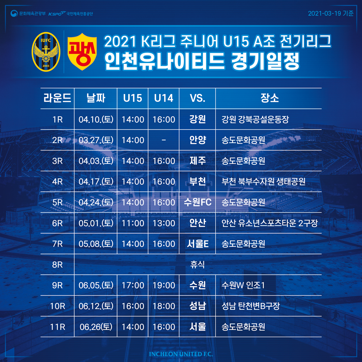 2021시즌 인천유나이티드 K리그 1 변경된 경기일정 공개