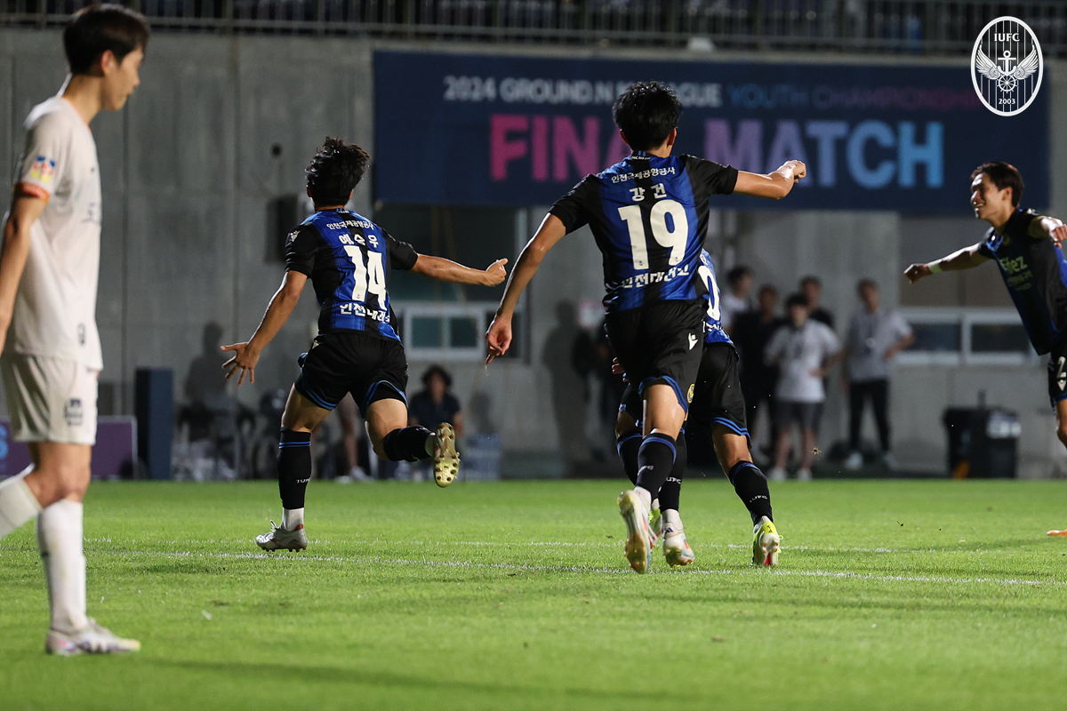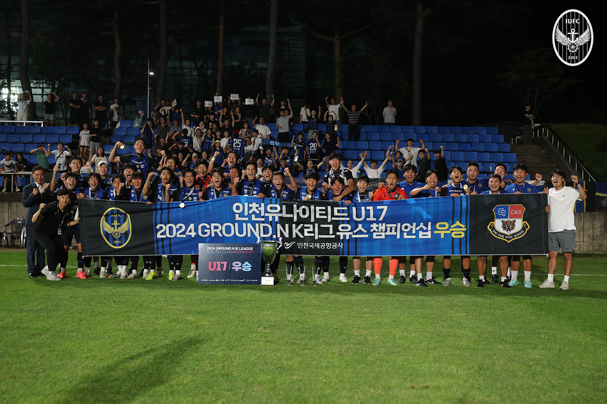 [UTD기자단=천안] 한 팀으로 뭉쳐 최고의 경기력을 발휘한 인천 대건고가 무더위를 날리는 시원한 득점과 함께 우승을 거머쥐었다.최재영 감독이 이끄는 인천 대건고는 지난 24일 천안축구센터 주경기장에서 열린 ‘2024 GROUND.N K리그 U17 챔피언십’ 결승 FC서울 U-18 오산고등학교와의 경기에서 2-1로 승리했다.