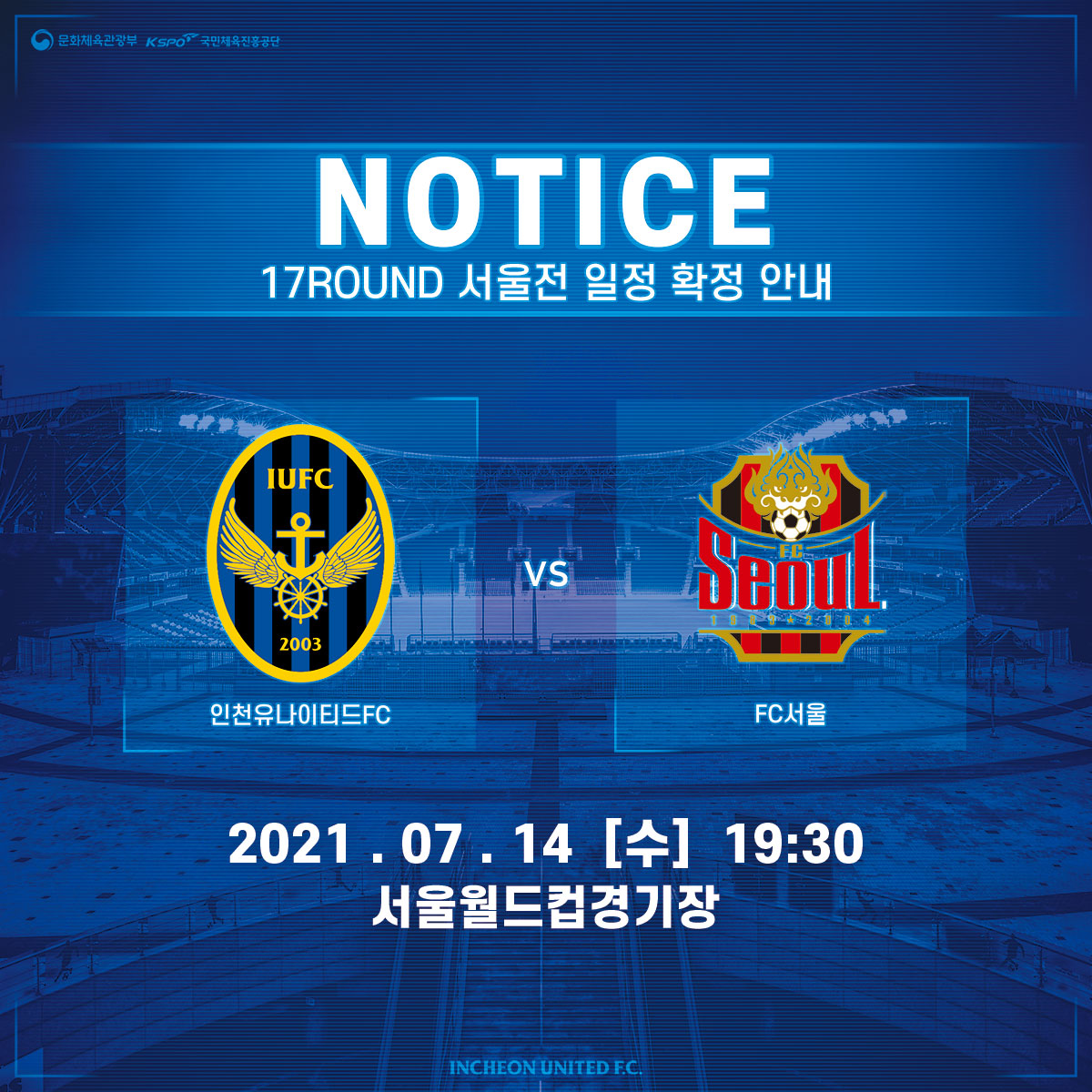 (변경) 17R 7/14(수) 19:30 vs. FC서울 / 서울월드컵경기장INCHEON UNITEDMEDIA FEEDS
