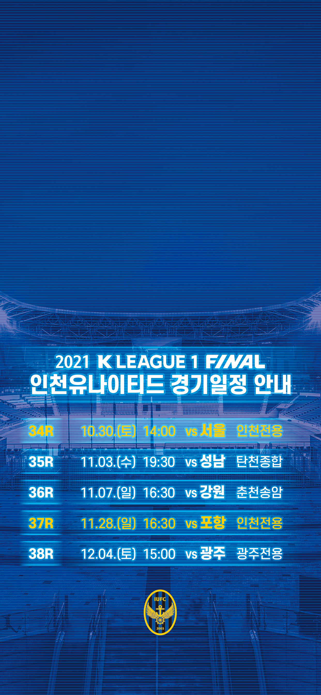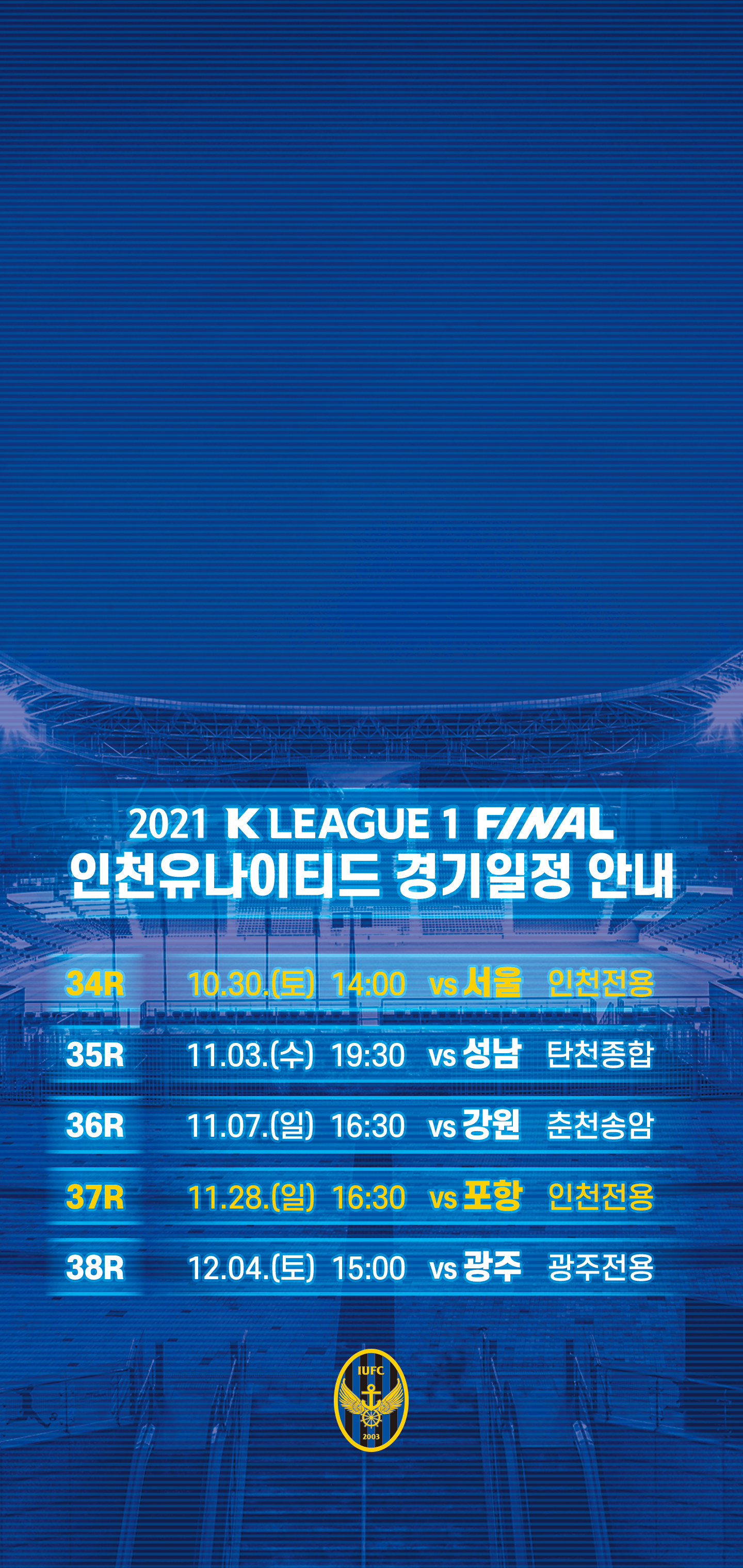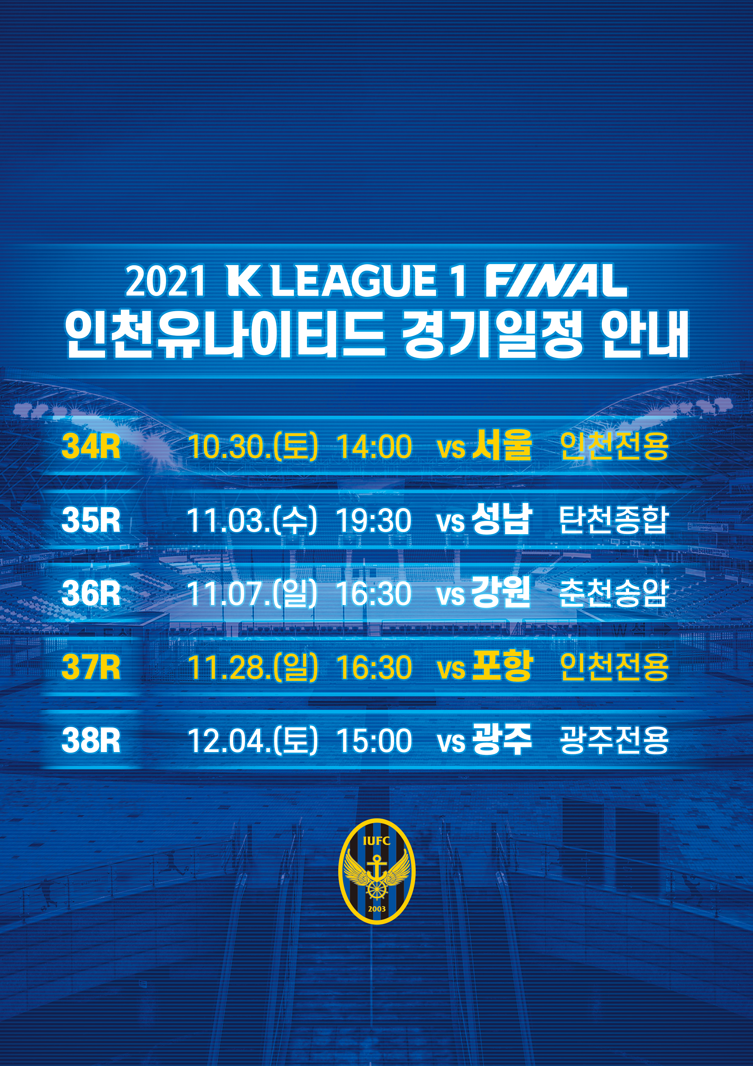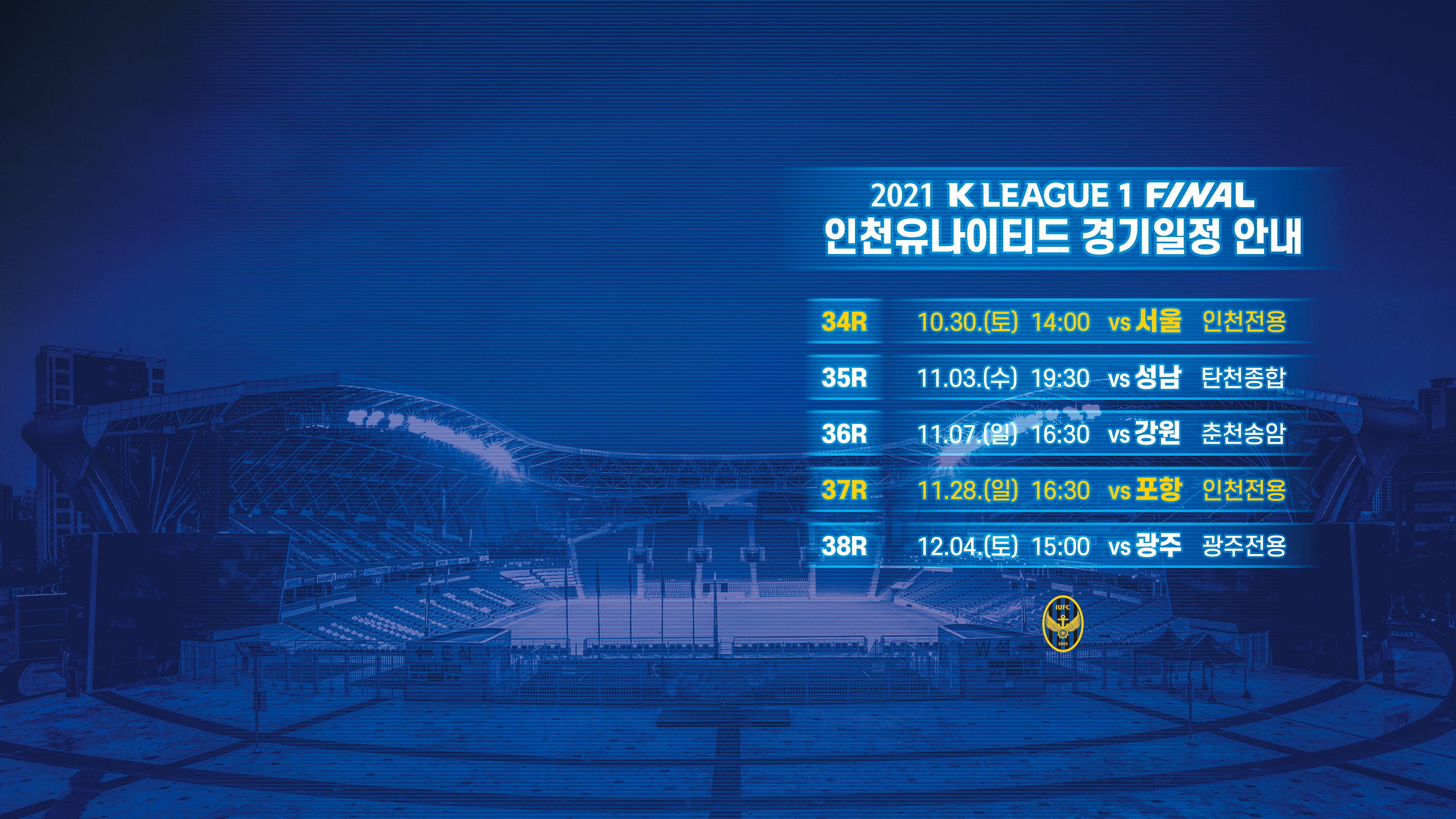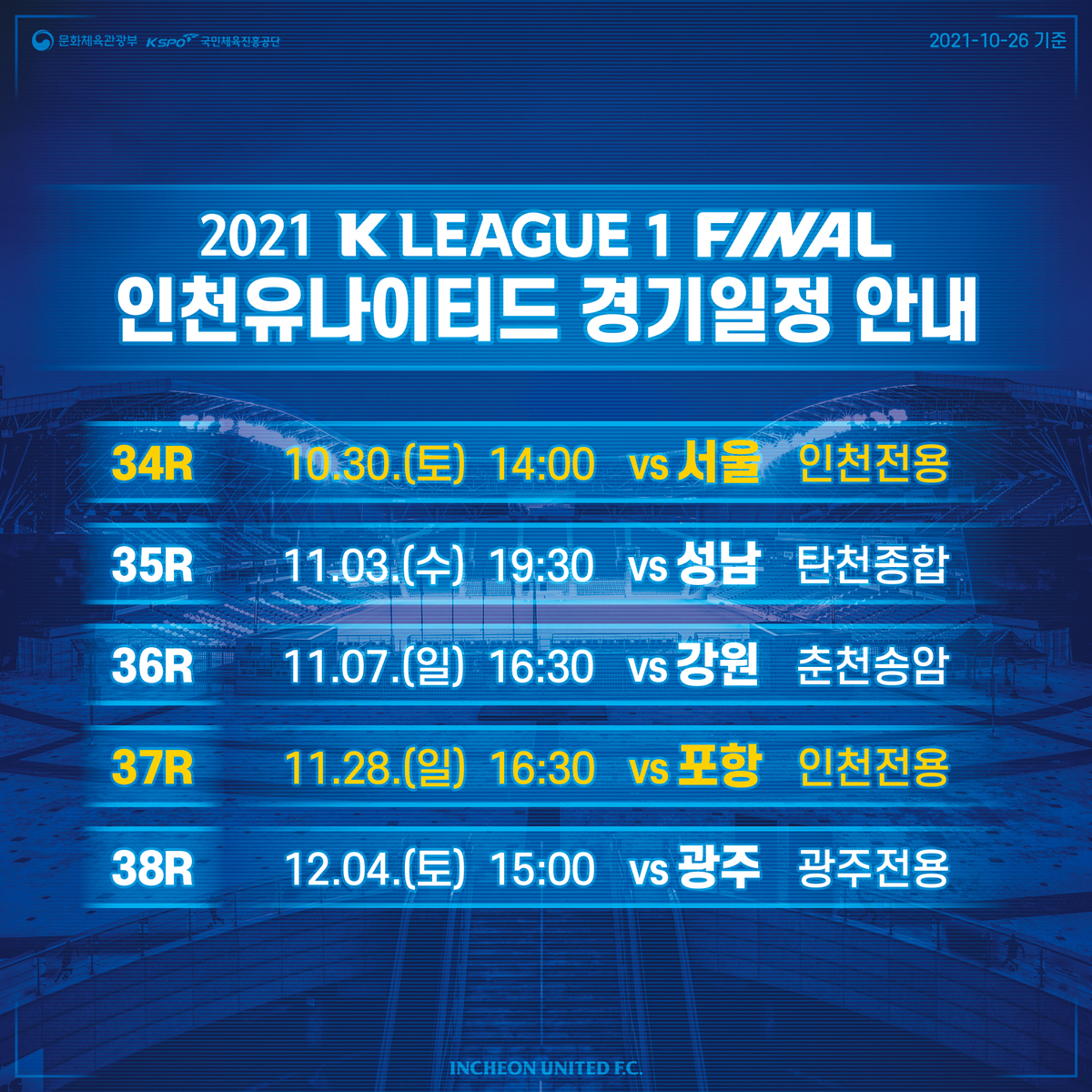 안녕하세요, 인천유나이티드입니다. 하나원큐 K리그 1 2021 파이널 라운드 일정 안내해드립니다.