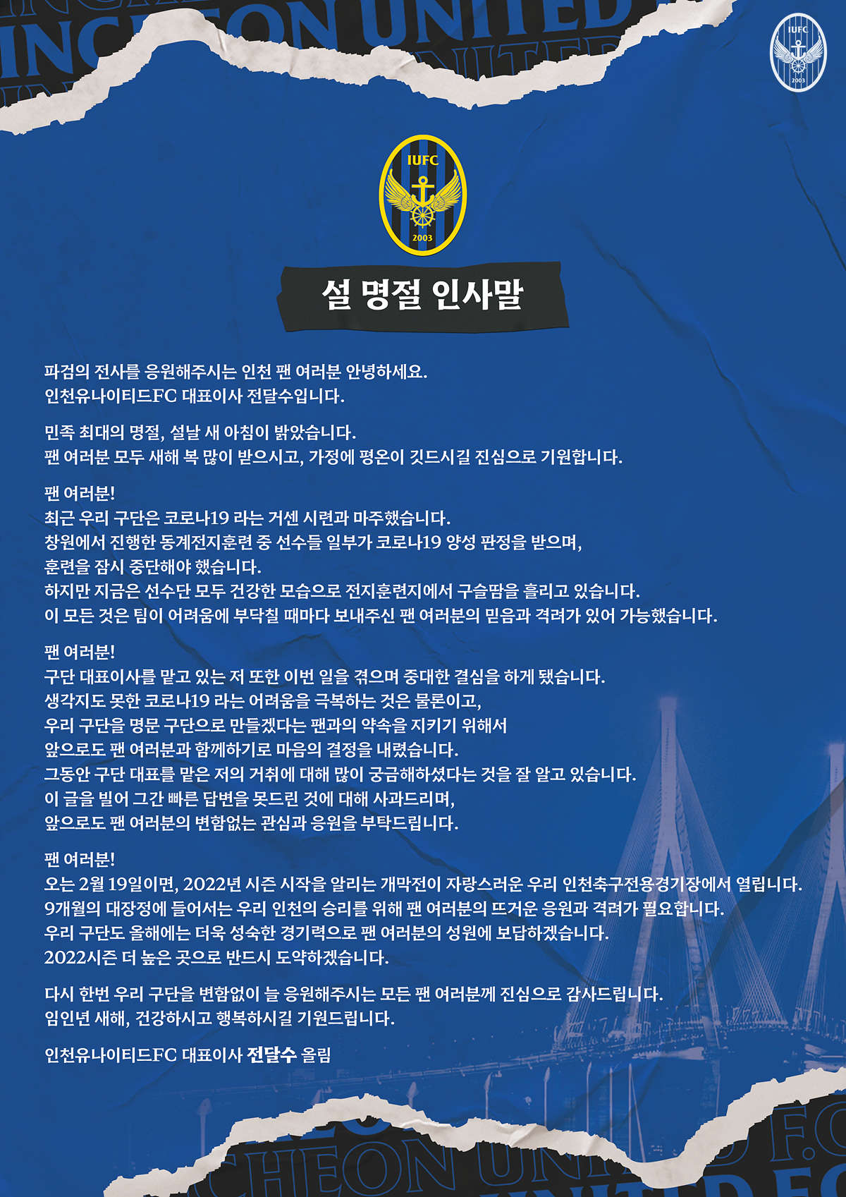 인천유나이티드FC 대표이사 전달수 올림INCHEON UNITEDMEDIA FEEDS
