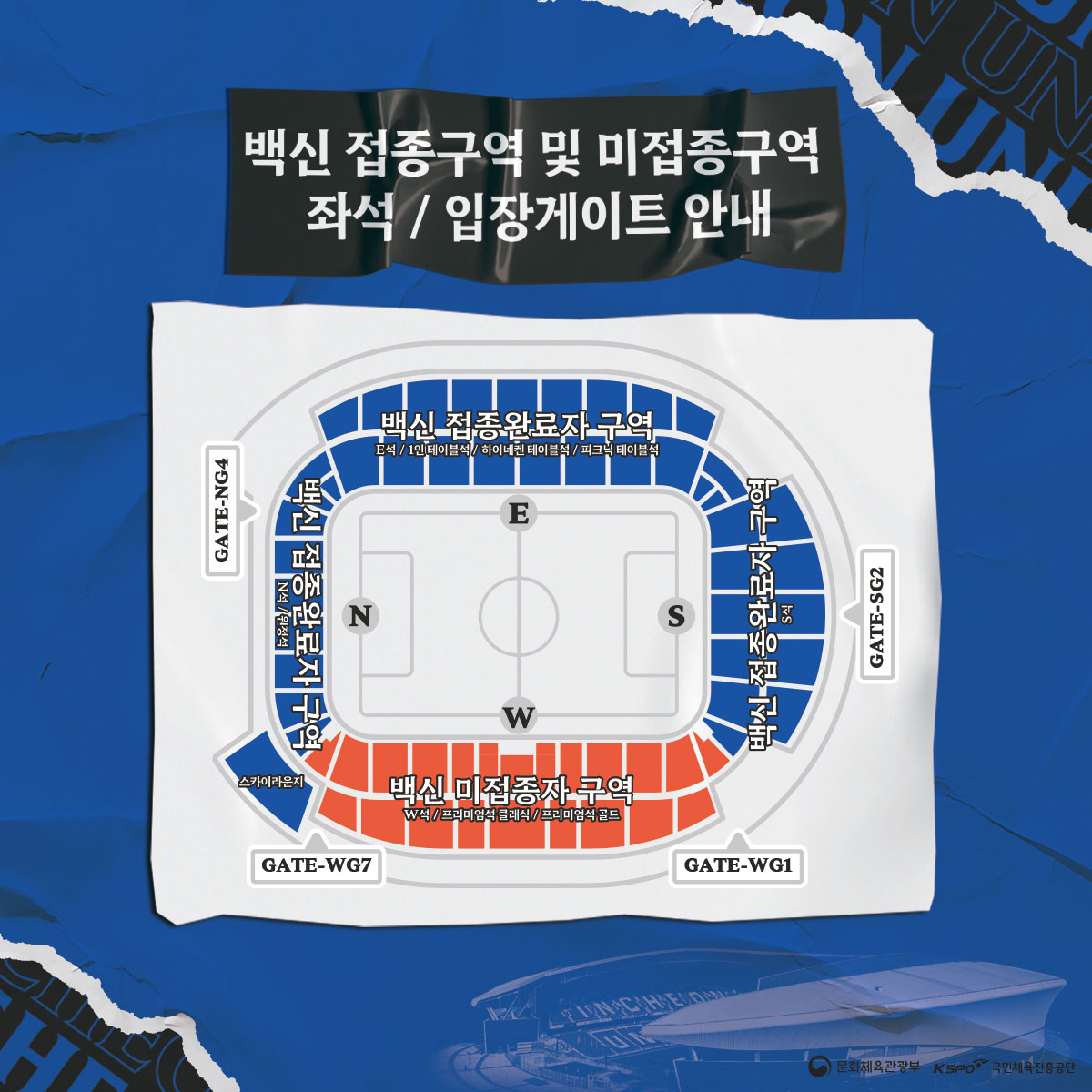 ▶ 백신 접종자 구역 : E석 / N석 / S석 / 테이블석 / 스카이라운지 / 원정석 *거리두기 없음, 취식 가능(단, 스카이라운지는 취식 불가)