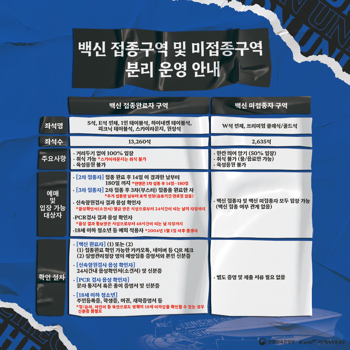 ▶ 백신 접종자 구역 : E석 / N석 / S석 / 테이블석 / 스카이라운지 / 원정석 *거리두기 없음, 취식 가능(단, 스카이라운지는 취식 불가)
