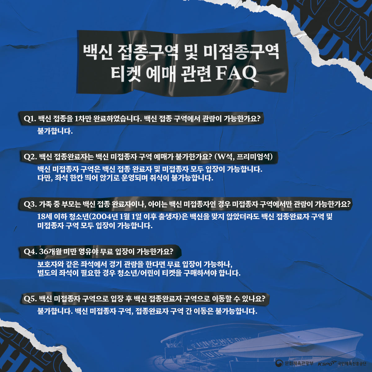 ▶ 백신 미접종자 구역 : W석 / 프리미엄석 *취식 불가능, 한칸 띄어 앉기
