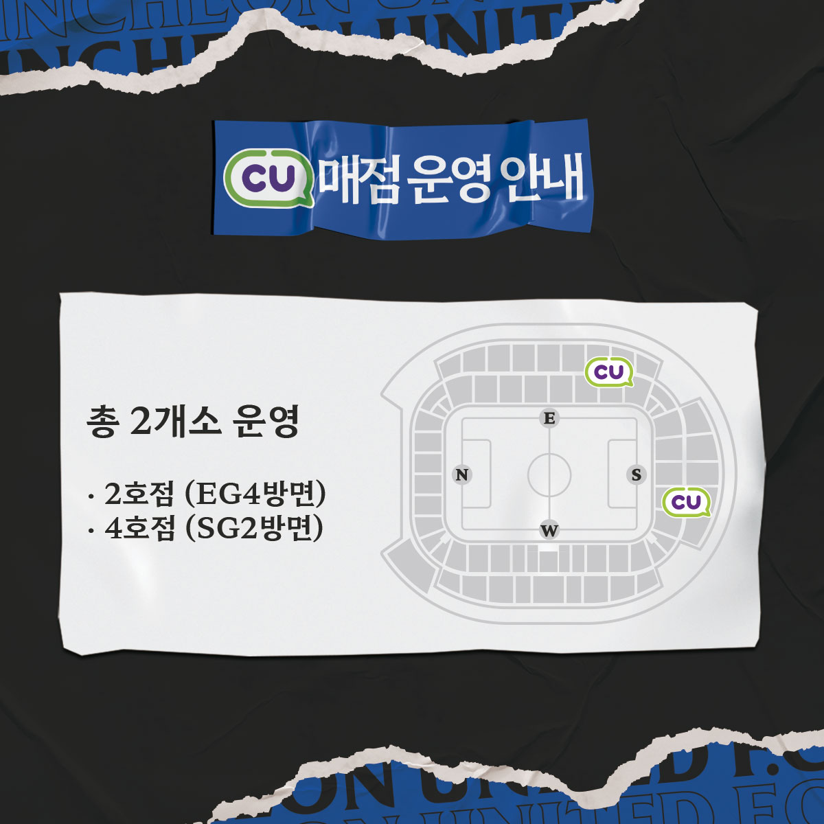 경기장 내 CU 편의점은 2곳을 운영합니다. 자세한 사항은 이미지를 참고해주세요.