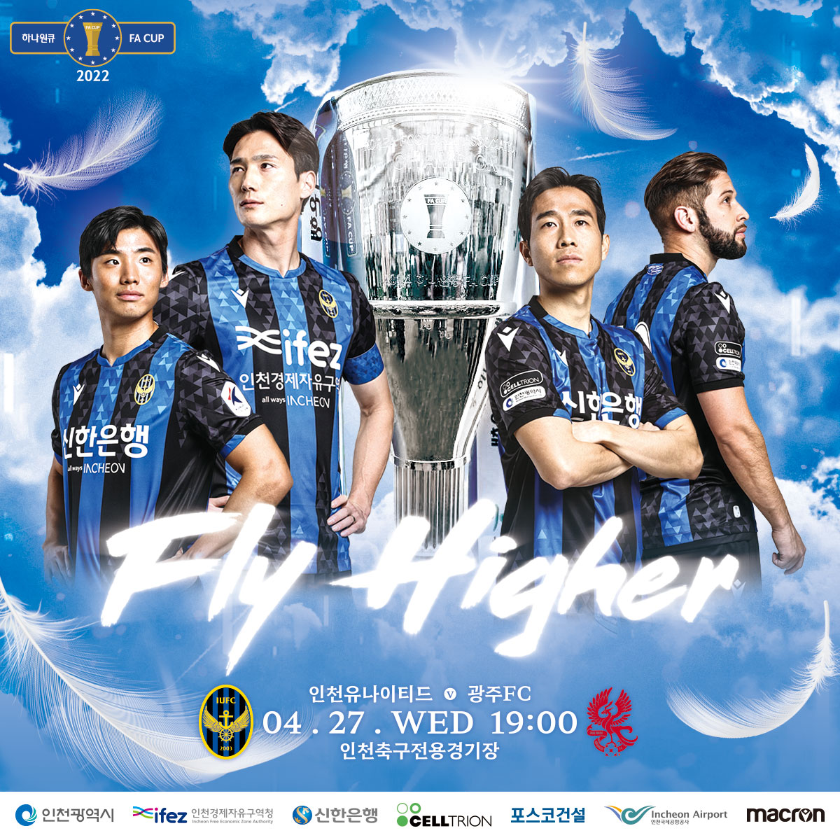 “Fly Higher! 상승세에 날개를 달아라”4/27(일) 오후 7시. 인천유나이티드가 광주를 상대로 2022 하나원큐 FA컵 3라운드(24강) 홈경기를 치릅니다.