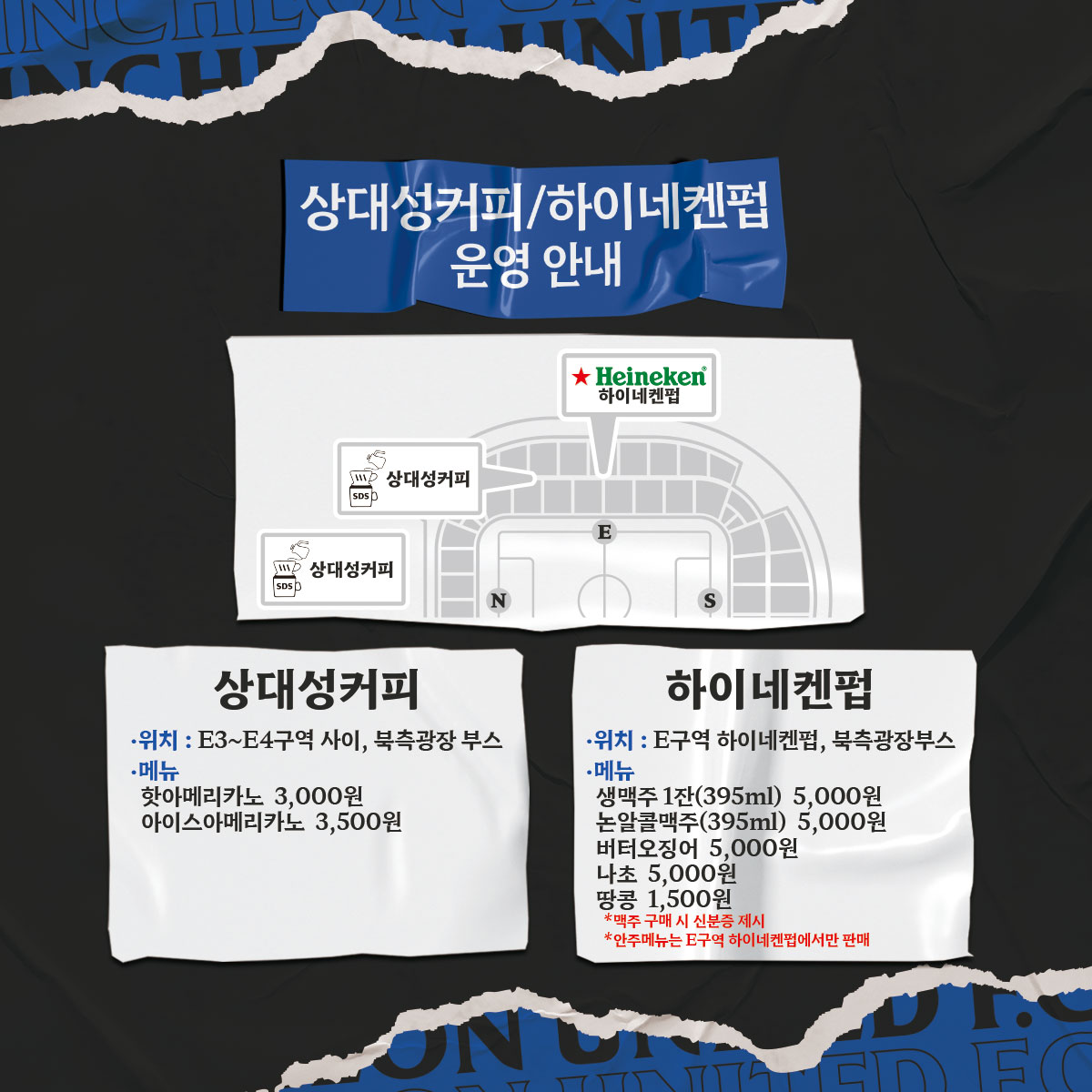 이번 전북전에서는 시원한 생맥주와 드립커피를 각각 하이네켄펍과 상대성커피 부스에서 판매하니 많은 이용바랍니다.