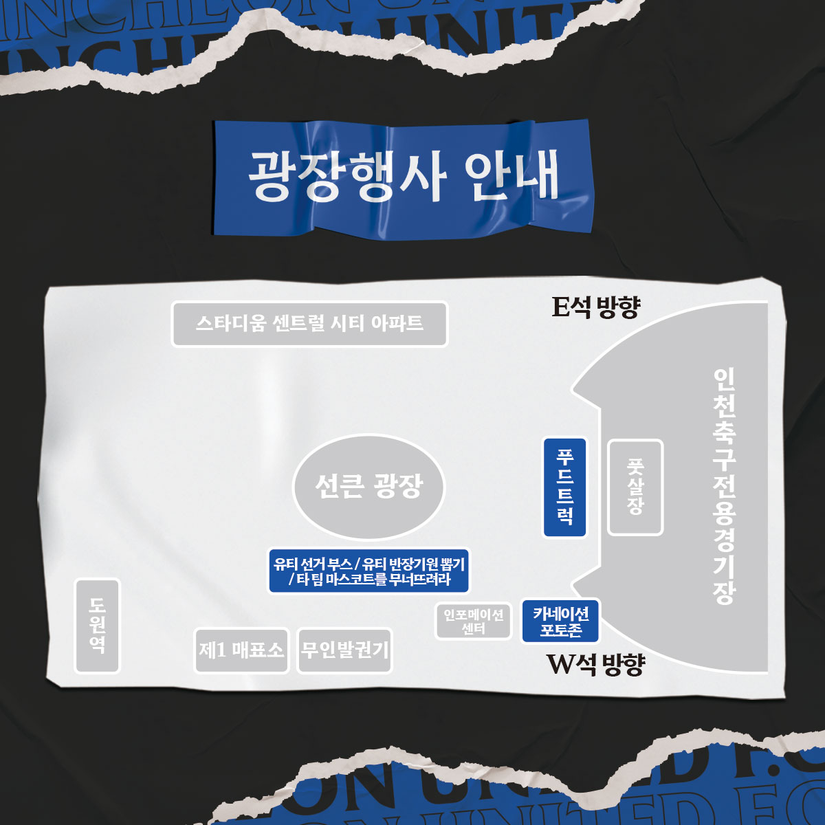 팬 여러분, 우리의 자랑스러운 인천 축구 성지 인천축구전용경기장에 찾아오셔서 인천의 승리를 다 함께 응원해주세요. 팬 여러분의 응원이 함께한다면 우리는 전북을 이기고 선두권 싸움에서 유리한 고지를 선점할 수 있을 것입니다.