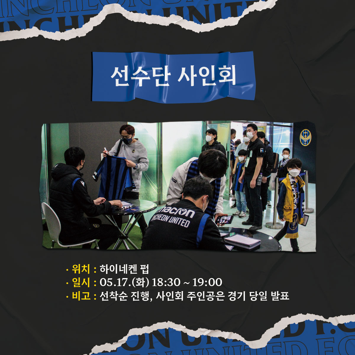미출전 선수 2명의 사인회가 하이네켄펍에서 진행됩니다. 코로나19로 2년 동안 선수단의 사인을 받지 못했던 팬분께서는 경기장에 일찍 오셔서 선수들에게 많은 응원을 보내주세요!