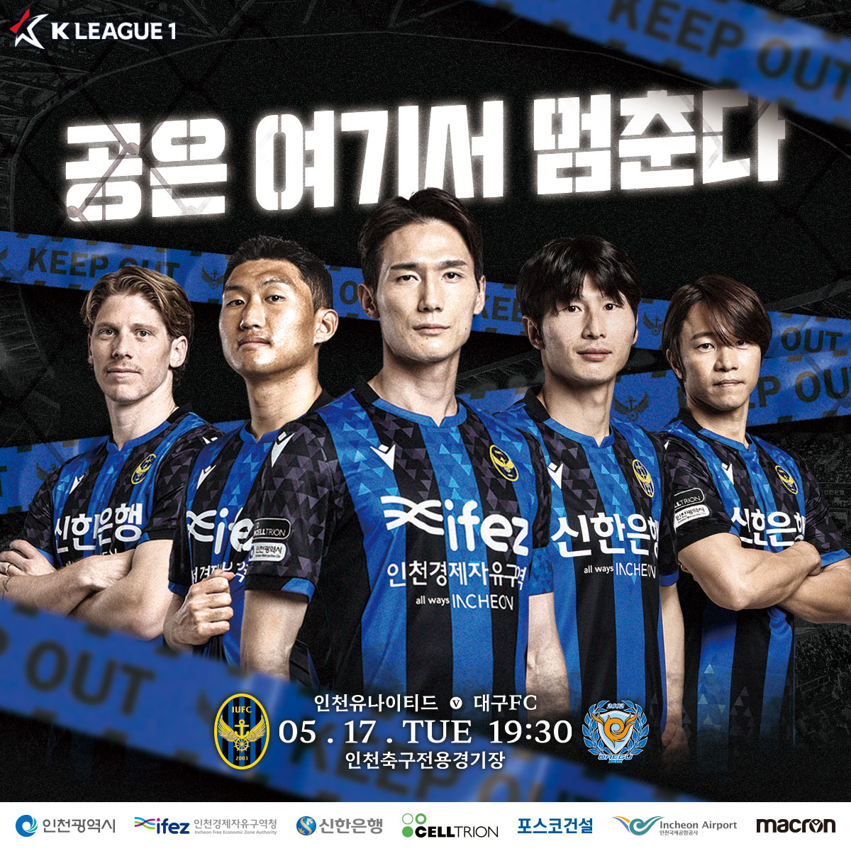“공은 여기서 멈춘다. 상위권을 지켜라!”5/17(화) 오후 7시 30분. 인천유나이티드가 대구FC를 상대로 2022시즌 K리그 1 13라운드 홈경기를 치릅니다.
