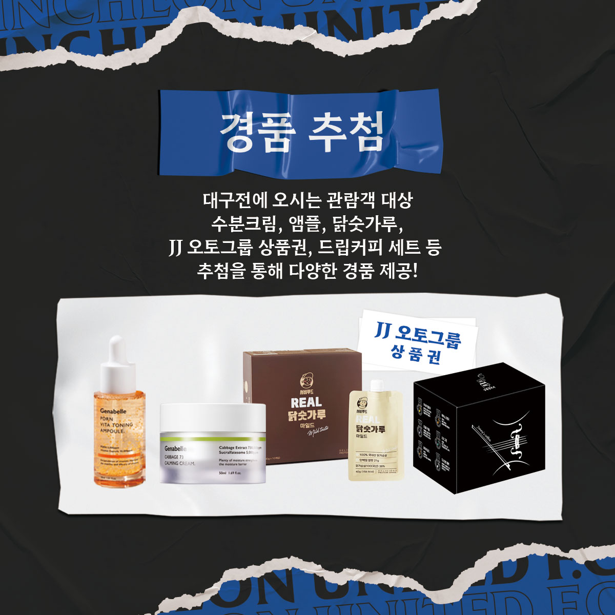 인천유나이티드 홈경기에 오시는 팬 분들을 위해 다양하고 많은 경품을 준비했으니, 티켓을 버리지 말고 꼭 지참해 주세요!