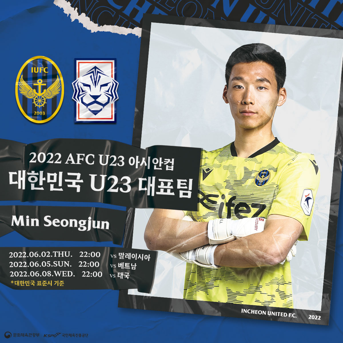 인천유나이티드 민성준 선수가 우즈베키스탄에서 열리는 2022 AFC U-23 아시안컵 대한민국 U23 국가대표팀 최종 명단에 이름을 올렸습니다.