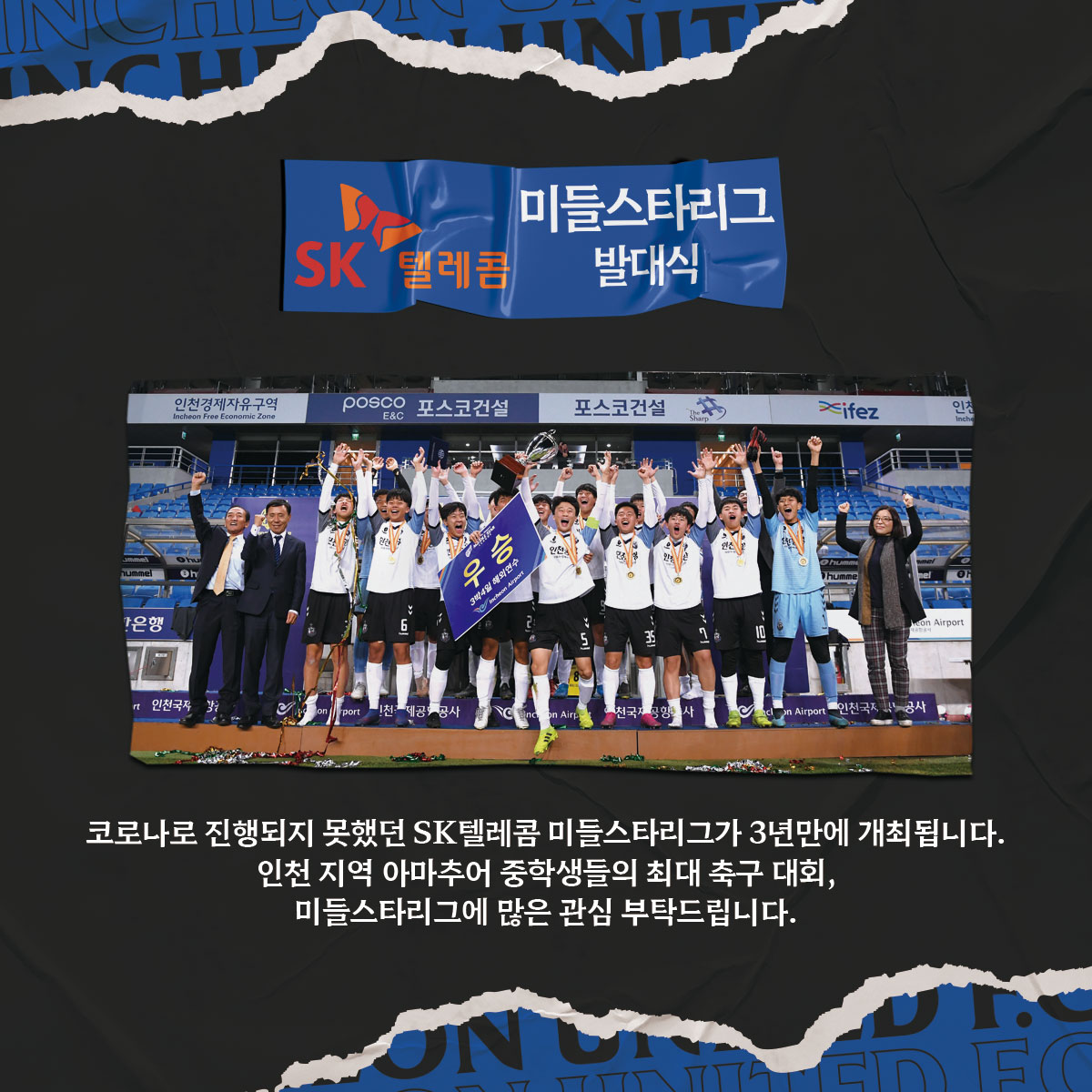 코로나19로 인해 지난 2년간 진행하지 못했던 인천 지역 중학생 축구대회 미들스타리그가 3년 만에 돌아왔습니다!