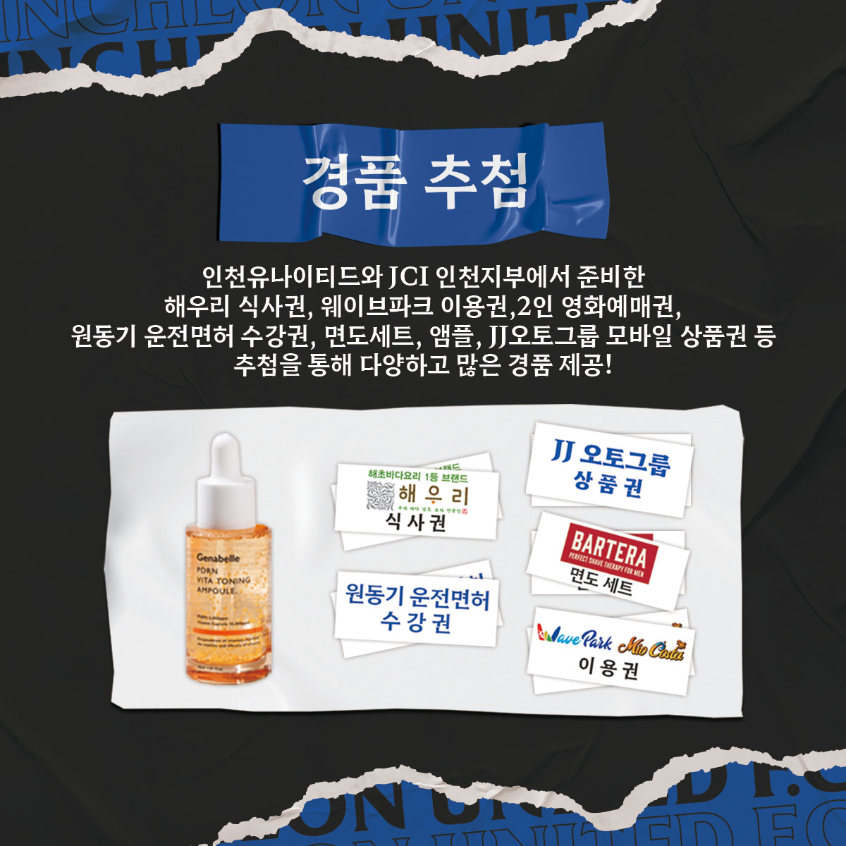 인천유나이티드와 JCI 인천지부가 준비한 다양하고 많은 경품이 준비되어 있습니다!