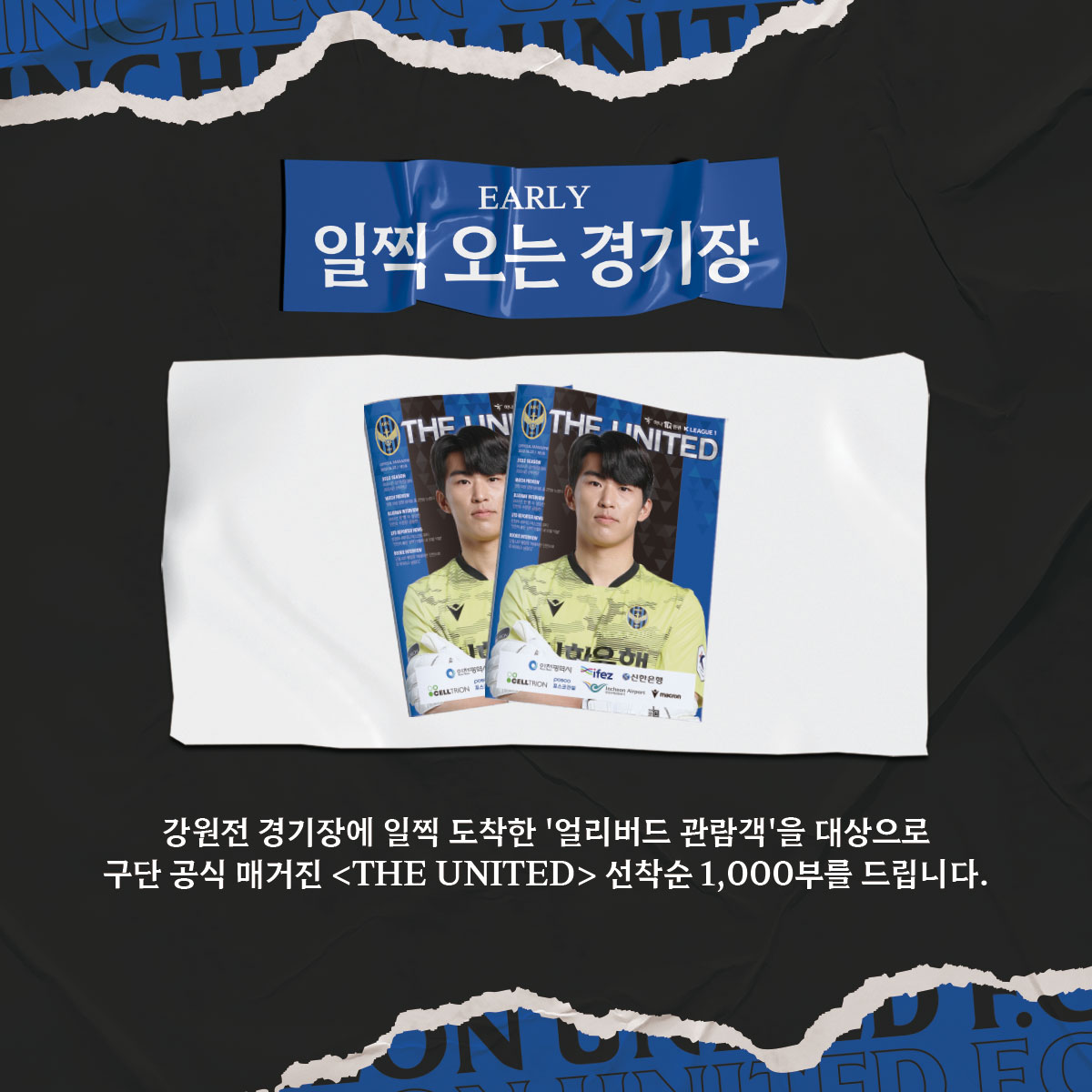 이번 강원전 홈경기에 일찍 오시는 관람객 분들께는 김동헌 선수, 황정욱 선수, 구단 마스코트 유티의 인터뷰가 담긴 구단 공식 매거진 1,000부를 선착순으로 제공합니다!