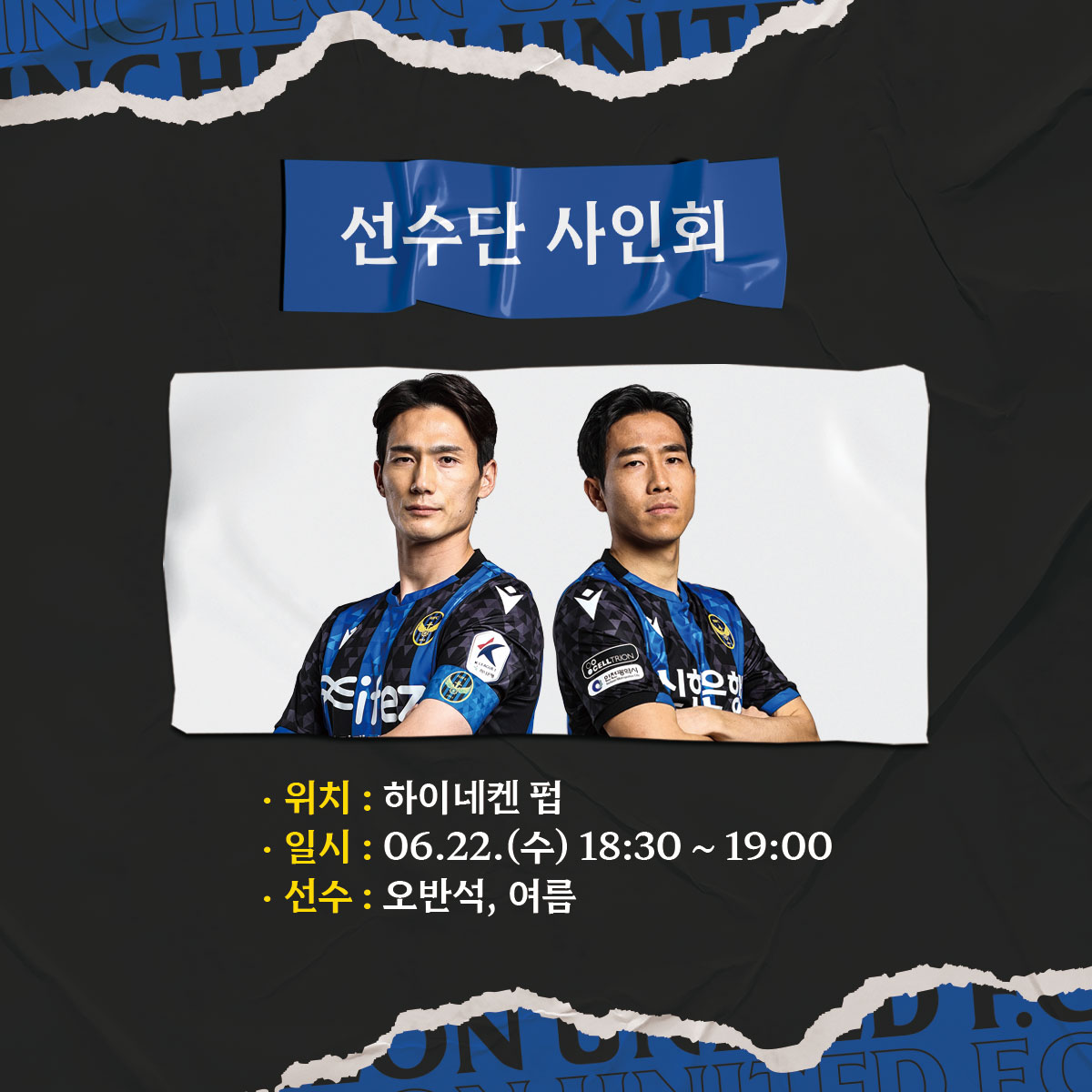 이날 미출전 선수 2명의 사인회가 하이네켄펍에서 진행됩니다. 주인공은 오반석 선수와 여름 선수 입니다!
