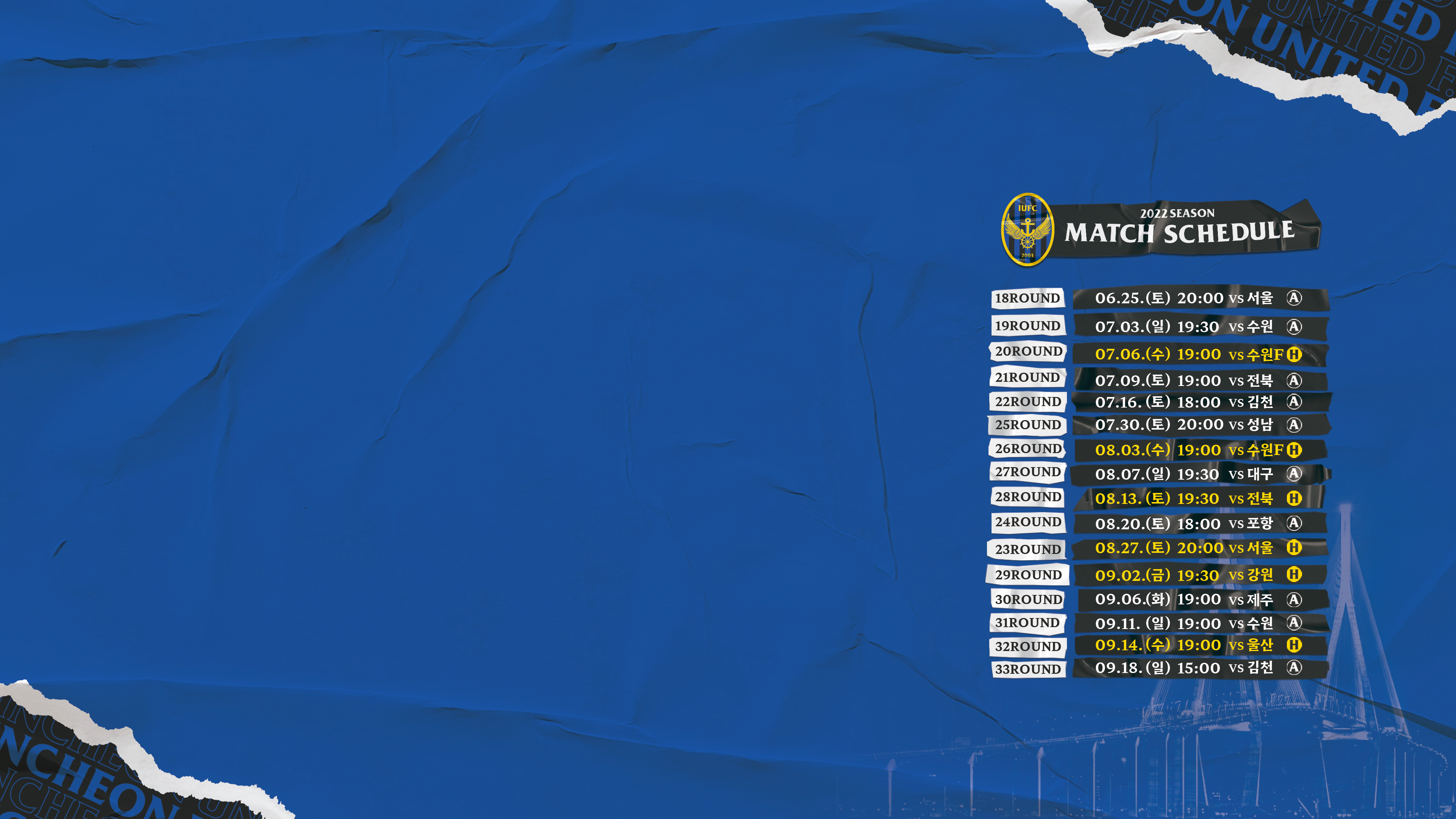 (변경) 23R 8/27(토) 20:00 vs. FC서울 / 인천축구전용경기장