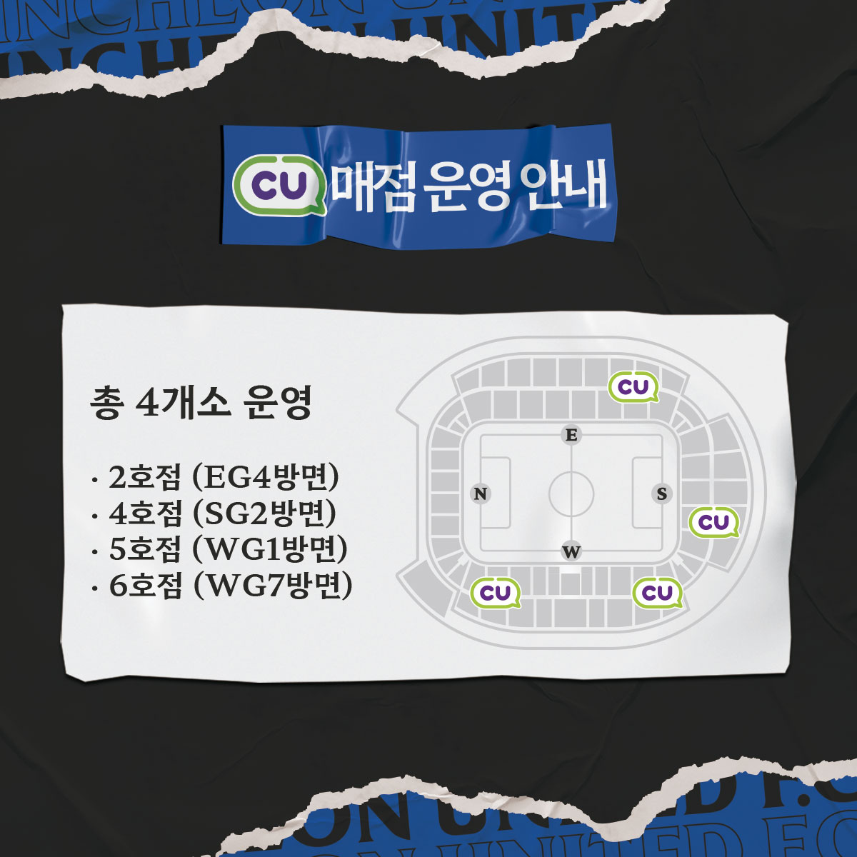 경기장 내 CU 편의점은 4곳을 운영합니다. 자세한 사항은 이미지를 참고해주세요.