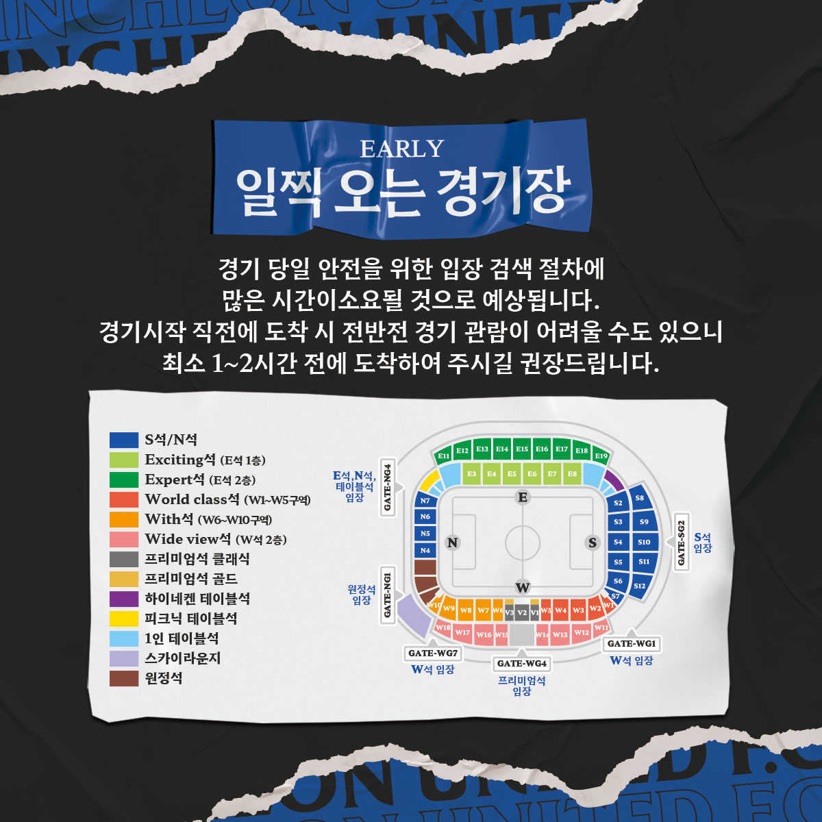 ※ 경기 시작 직전에 도착 시 전반전 경기 관람이 어려울 수도 있으니 경기 시작 전에 도착하여 주시길 권장해 드립니다.ESC 캠페인 (1) ‘EARLY’ 일찍 오는 경기장