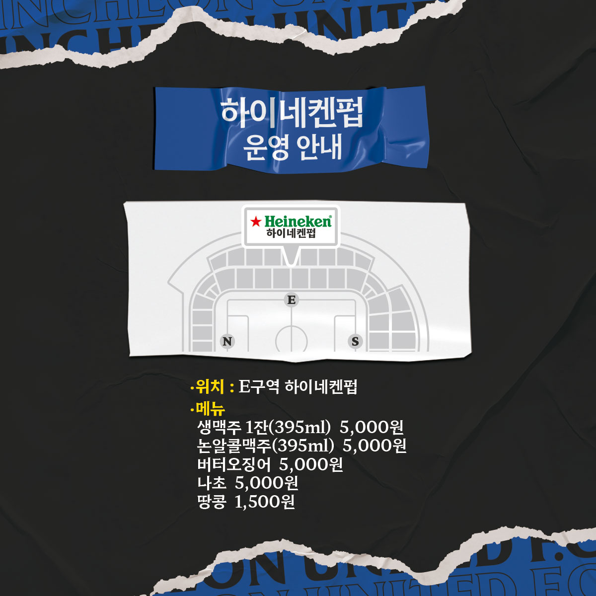 경기장 E석 하이네켄펍에서 시원한 생맥주를 판매하고 있습니다. 팬 여러분의 많은 이용바랍니다.