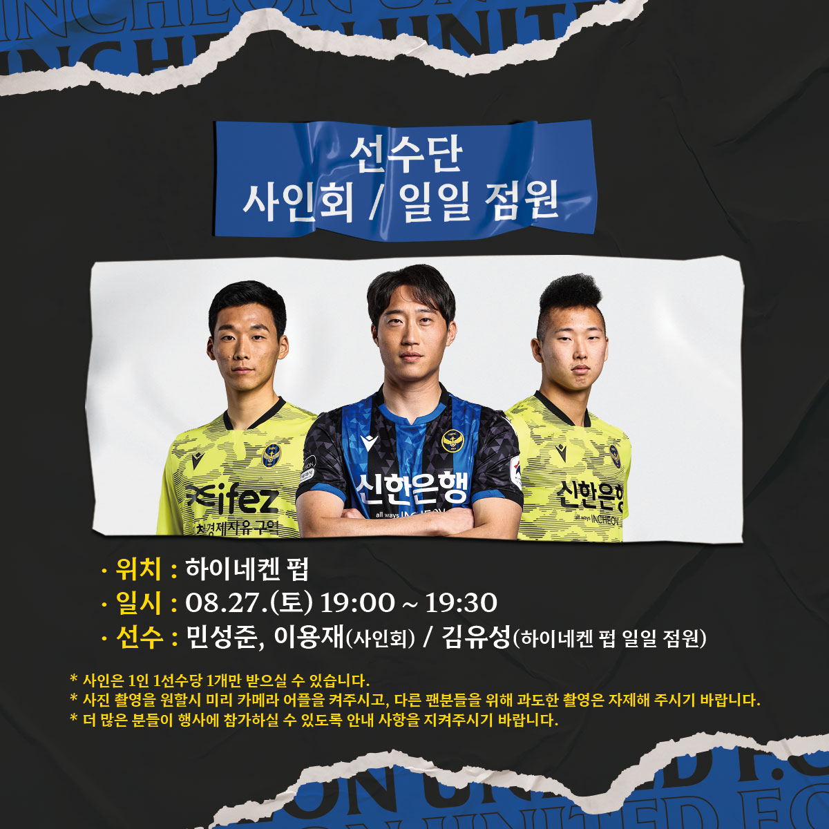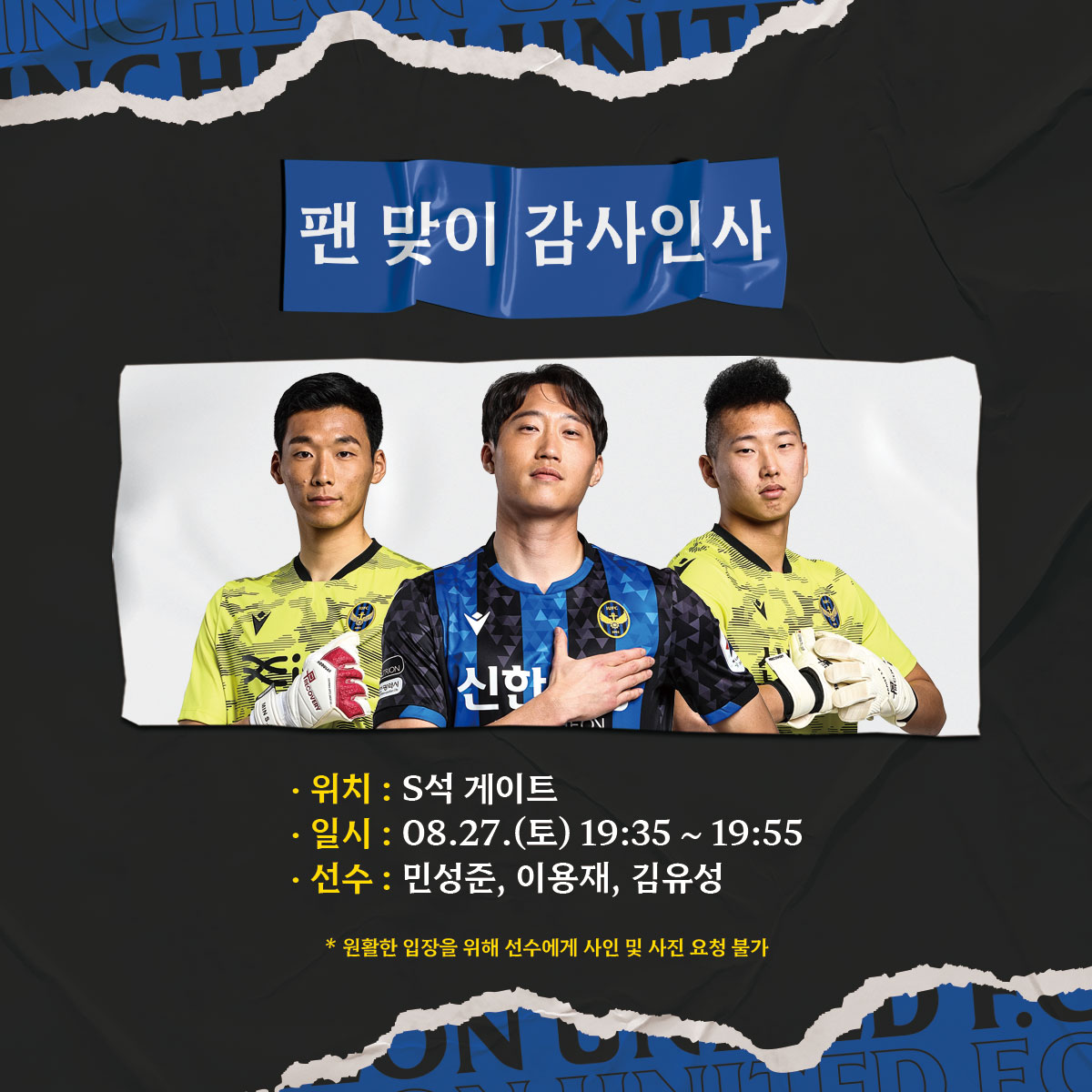 ※ 더 많은 팬분들이 사인회에 참가하실 수 있도록 이미지 내 유의사항을 꼭 지켜주시기 바랍니다.선수단 팬 맞이 감사인사
