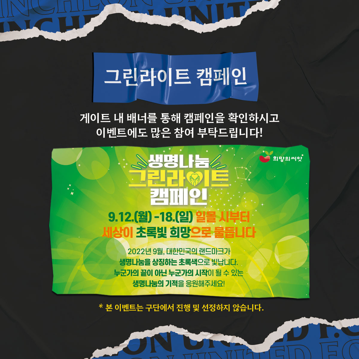 게이트 내 배너를 통해 그린라이트 캠페인 내용을 확인하시고 이벤트에도 많은 참여 부탁드립니다!