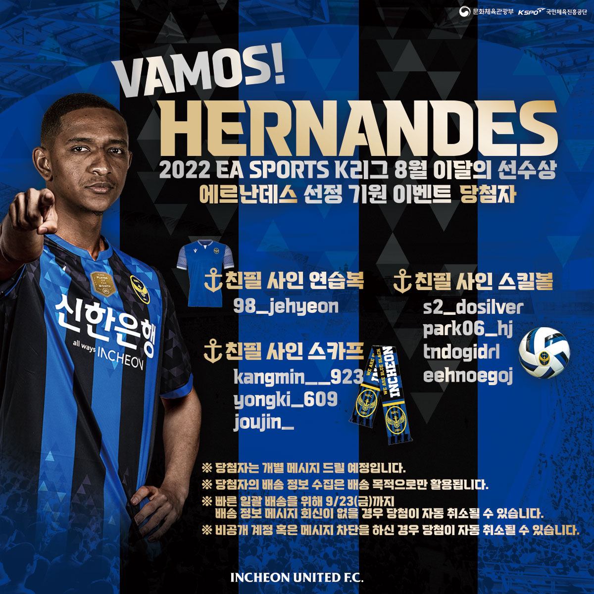 에르난데스 2022 EA SPORTS K리그 8월 이달의 선수상 선정 기원 이벤트 당첨자 발표
