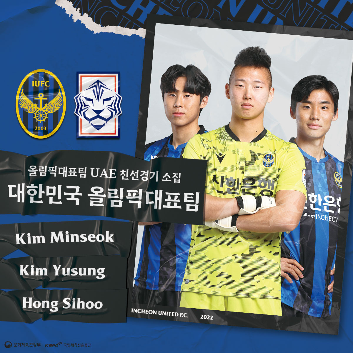 인천유나이티드 김유성, 김민석, 홍시후 선수가 대한민국 올림픽대표팀 UAE 친선경기 소집 명단에 이름을 올렸습니다.