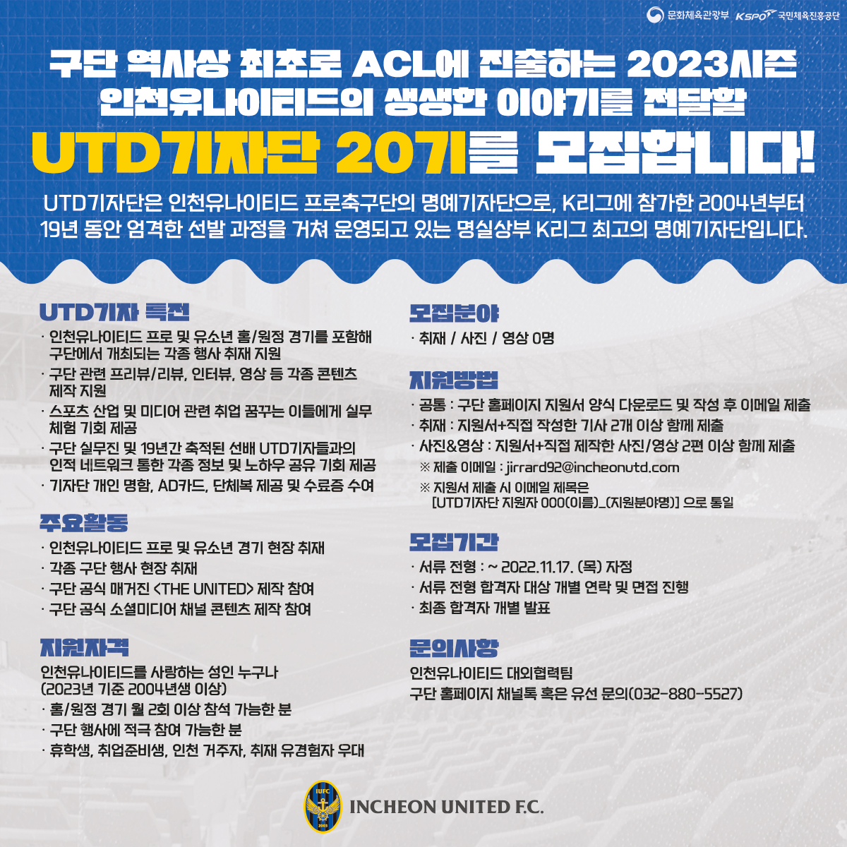 인천유나이티드의 생생한 이야기를 전달할 UTD기자단 20기를 모집합니다.