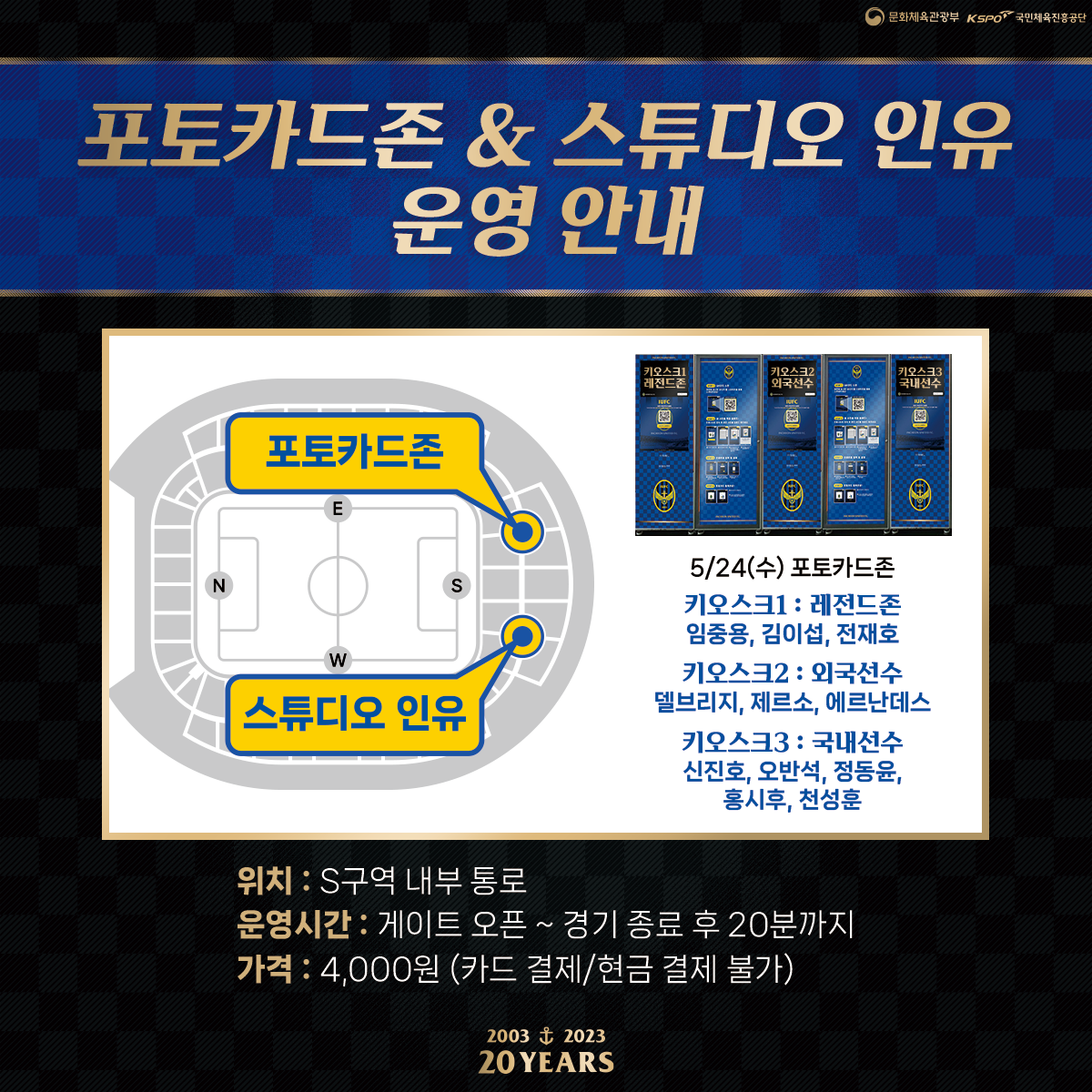 S석 내부 통로에서 선수 포토카드를 뽑으실 수 있으며, 추억이 담긴 스튜디오 인유 사진 촬영도 즐기실 수 있으니 팬 여러분의 많은 이용 부탁드립니다.