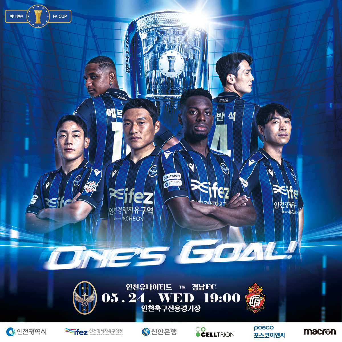 "FA CUP, 모두의 목표를 향해!"5/24(수) 오후 7시 인천유나이티드가 경남FC를 상대로 승리를 노립니다.