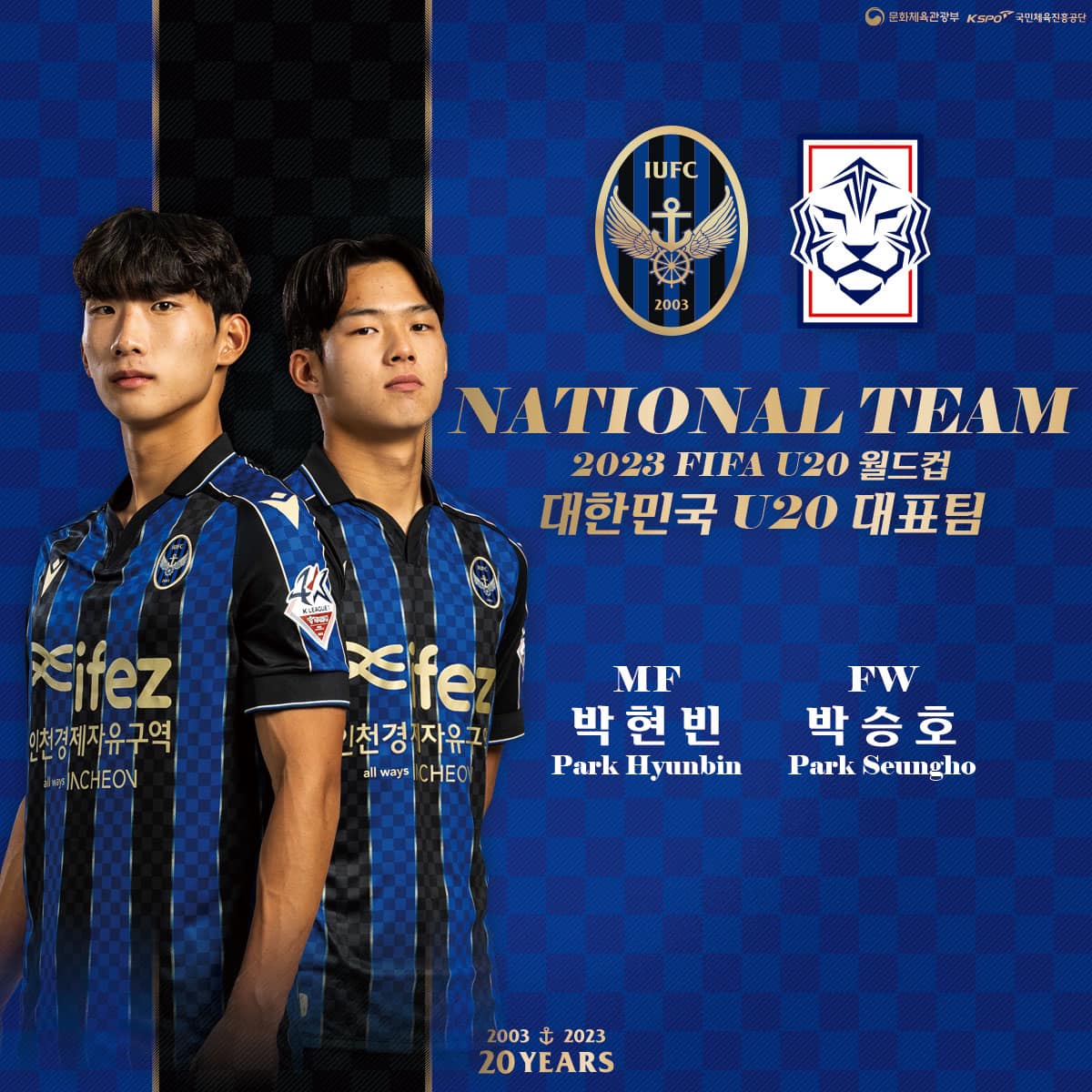 인천유나이티드 박승호, 박현빈 선수가 2023년 FIFA U20 월드컵 대한민국 국가대표로 발탁되었습니다.