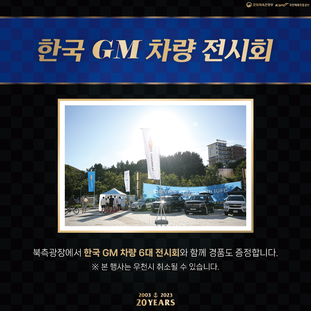 제주전 북측광장에서 한국GM 차량전시회가 열립니다. 전시회에서 다양한 경품도 증정하오니, 팬 여러분의 많은 관심 부탁드립니다!