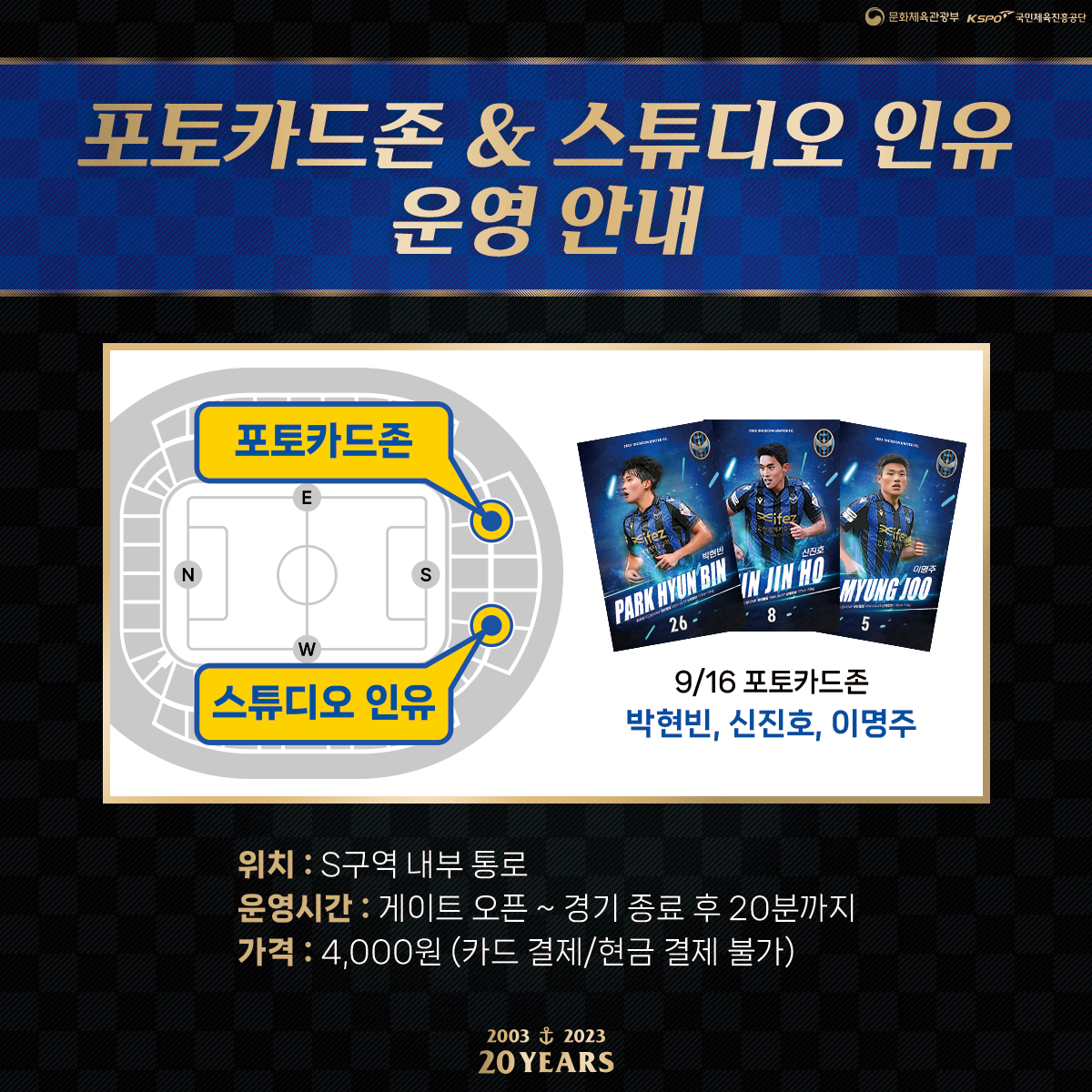 S석 통로에 설치된 포토카드존에서 '박현빈, 신진호, 이명주 선수'의 포토카드를 뽑아보세요!