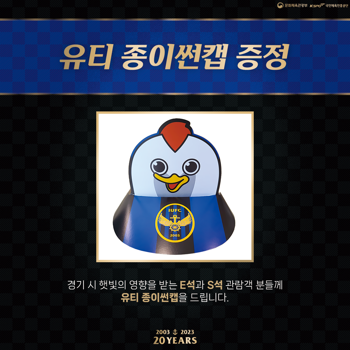 경기 당일 햇빛의 영향을 받는 E석과 S석 관람객 분들께는 게이트에서 유티 종이썬캡을 증정합니다!