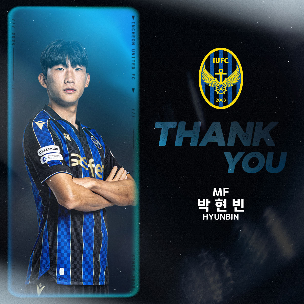 우리 구단은 유소년 팀부터 프로 계약을 맺고 데뷔하여 파검의 전사로 활약한 5년 동안 팀을 위해 희생하고 묵묵히 최선을 다해줬던 박현빈 선수에게 감사드리며 앞날에 행운이 있길 응원하겠습니다.INCHEON UNITEDMEDIA FEEDS