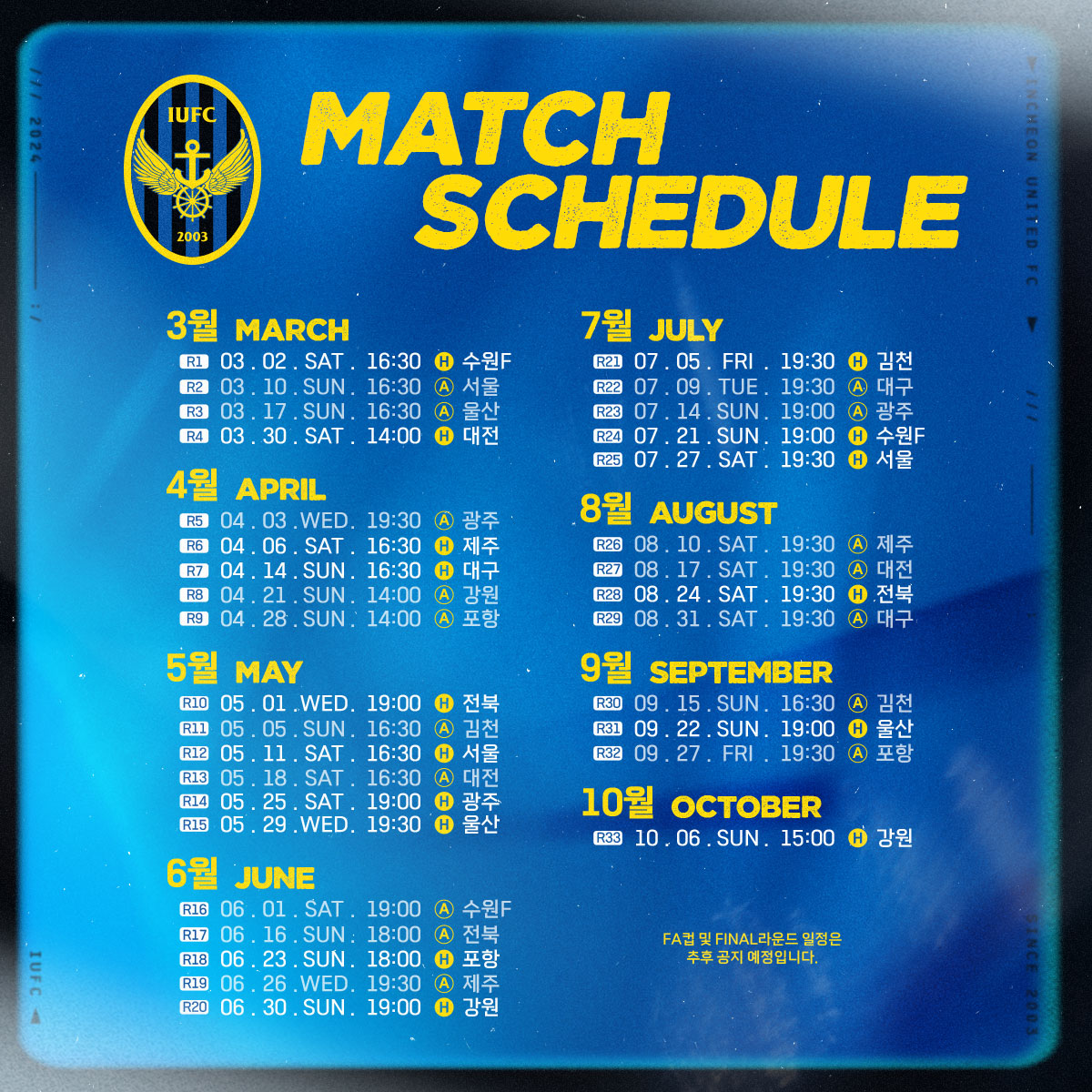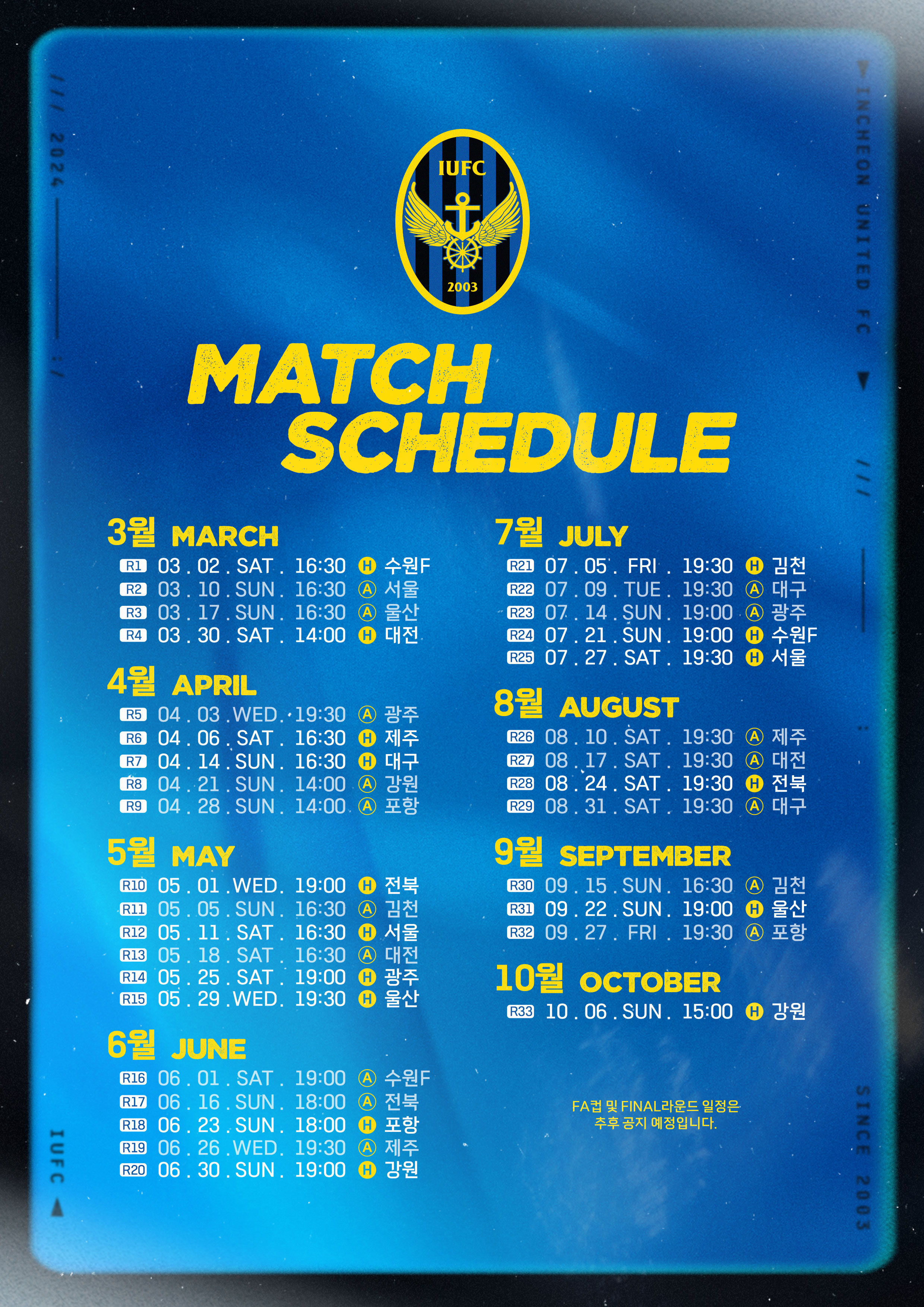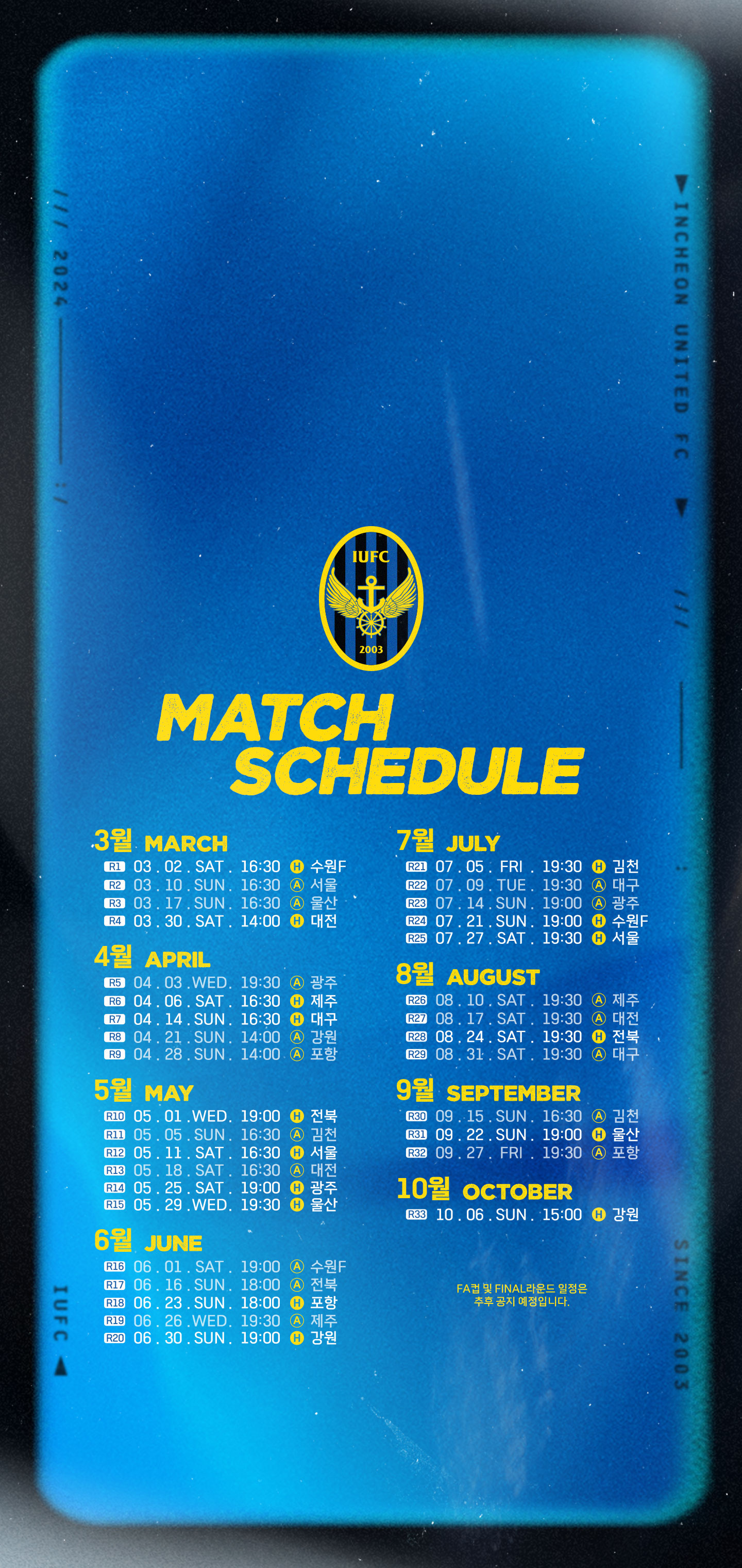 안녕하세요, 인천유나이티드입니다. 2024시즌 K리그 1 일정 안내해드립니다.
