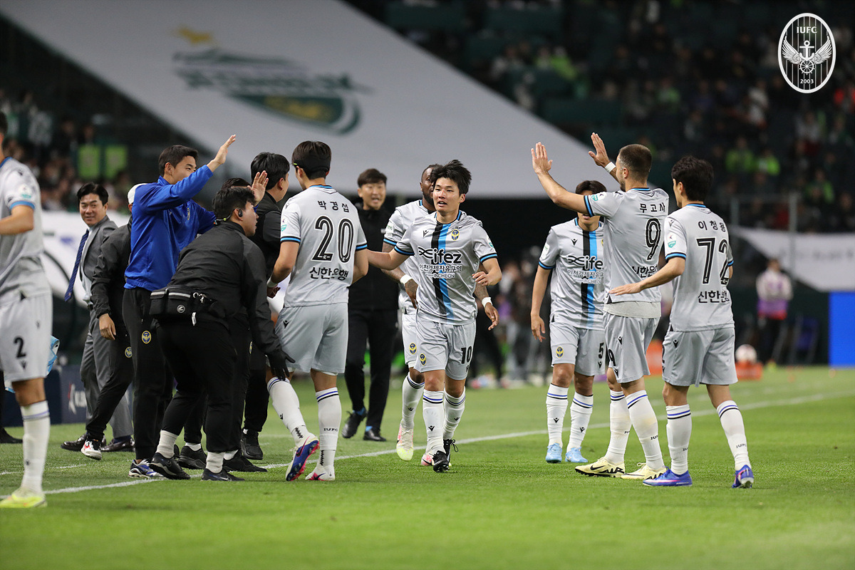 가슴을 쓸어내리는 장면이 나오기도 했다. 후반 31분 오른쪽 측면에서 넘어온 패스를 이승우가 슈팅했지만, 이태희가 손끝으로 막아내면서 위기를 넘겼다. 후반 35분 인천은 체력적으로 지친 모건 페리어를 빼고, 박호민을 투입했다. 그 후로 막바지까지 상대 공세를 철저하게 막아냈고, 격차를 유지한 채 경기를 마무리했다.
